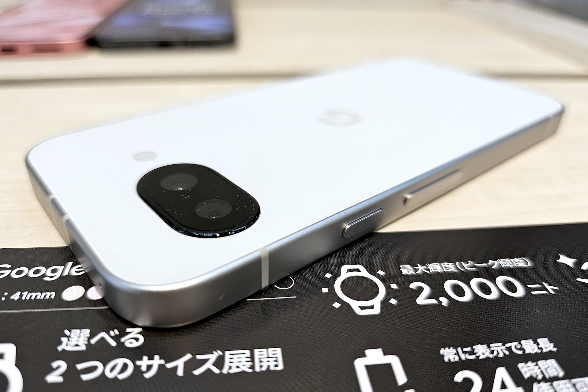 本記事では発売に向けてMNOのキャリアショップや量販店などでもPixel 9aの展示が始まっていたので、まずは外観を中心に写真で紹介しつつ、GoogleがPixel 9aのデザインについて説明しているため、合わせて紹介したいと思います。なお、詳細な製品情報については『Google、Tensor G4搭載の新スマホ「Pixel 9a」を発表!日本でも4月発売で後日予約開始。価格はアメリカでは499ドル(約7万5千円)から - S-MAX』をご覧ください。