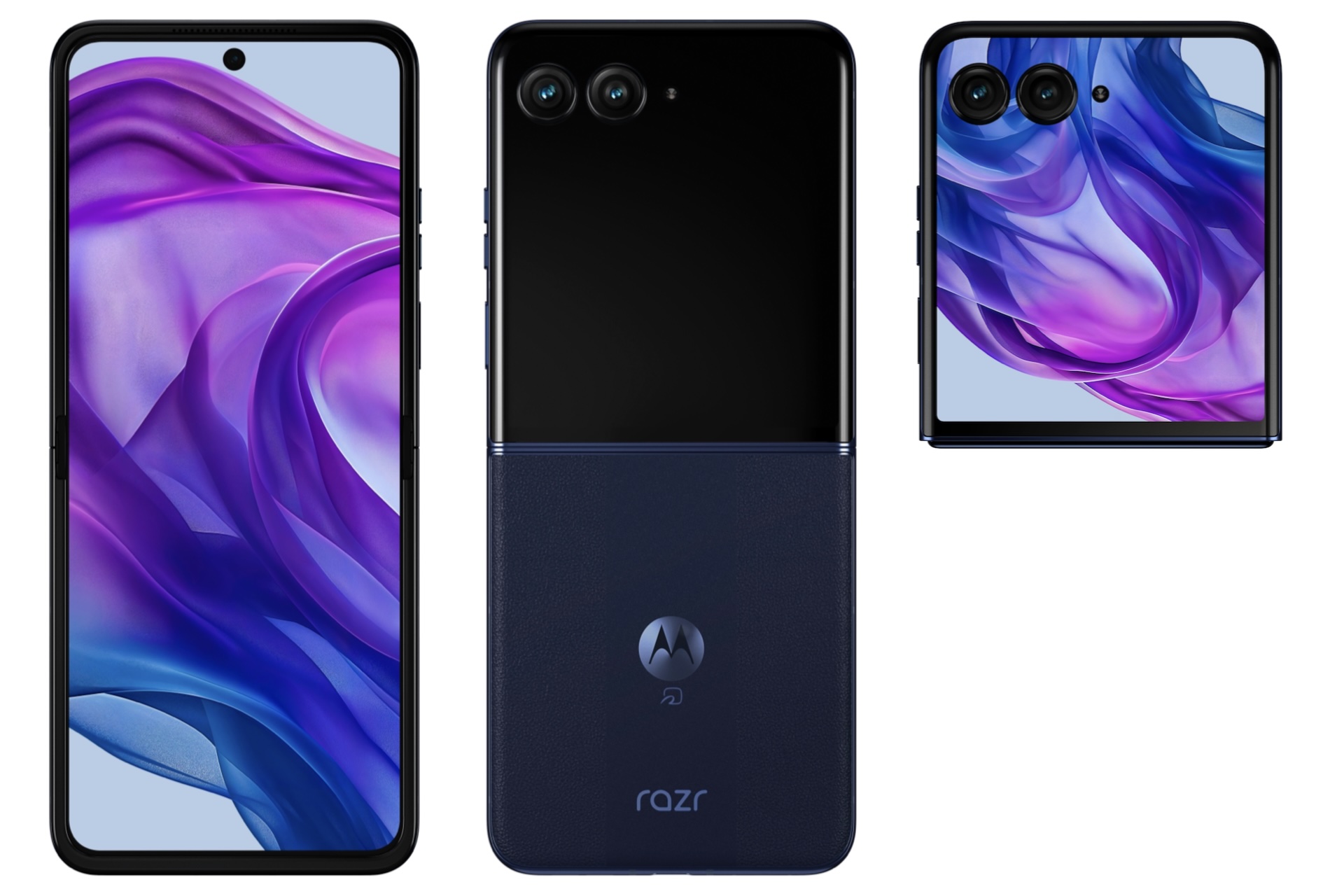 開いた状態での画面占有率は約85.33%で、外装は背面パネルが大胆な色合いの柔らかいフェイクレザー仕上げで手に持ったときの感触と同じくらい見た目に優れた輪郭のあるエッジが特徴となっており、側面などのフレームは6000シリーズのアルミニウム素材となっており、防水(IPX8準拠)に対応し、サイズは開いた状態で約171.42×73.99×7.09mm(最薄部)、閉じた時で約88.09×73.99×15.32mm、質量は約189g、本体色はSoftBank版ではミッドナイトブルーの1色のみです。