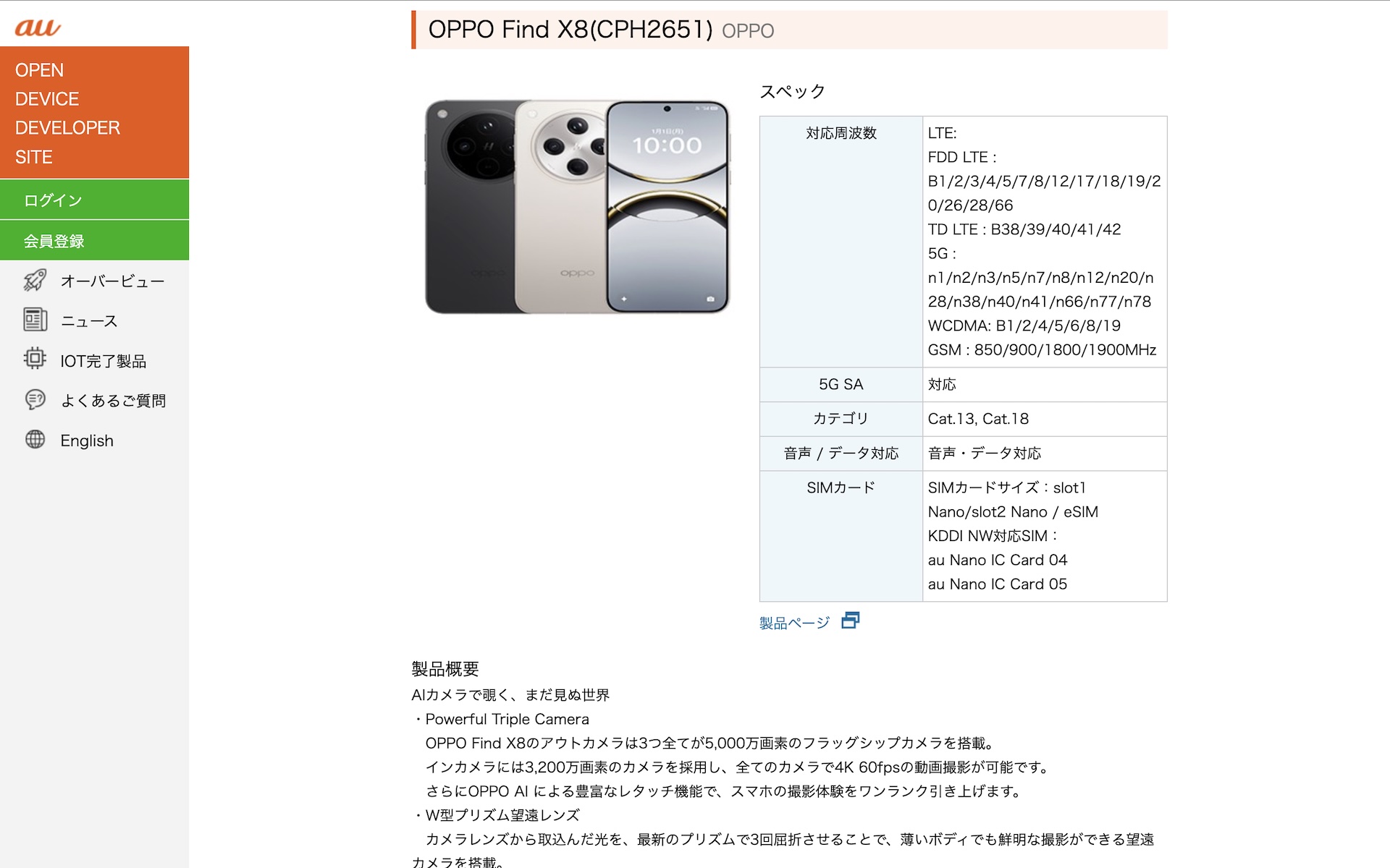 これにより、日本のオープン市場向けメーカー版(いわゆる「SIMフリーモデル)」として販売されているOPPO Find X8 CPH2651がau回線のネットワークに公式に対応し、auなどにて物理SIMカードおよびeSIMともに音声通話やデータ通信が利用できることがKDDI公式に案内されました。
