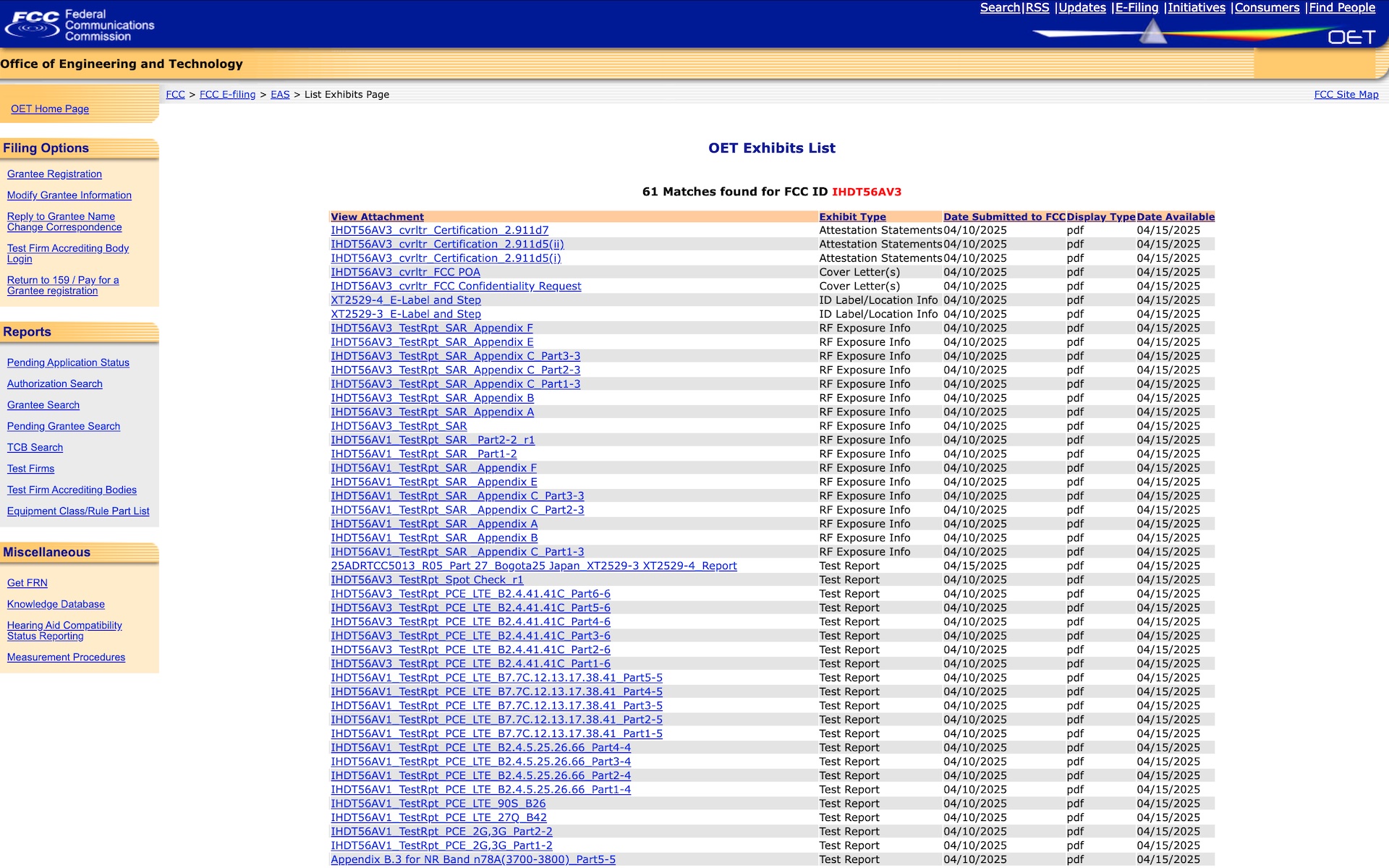 ・IHDT56AV3 - OET List Exhibits Report - FCC
