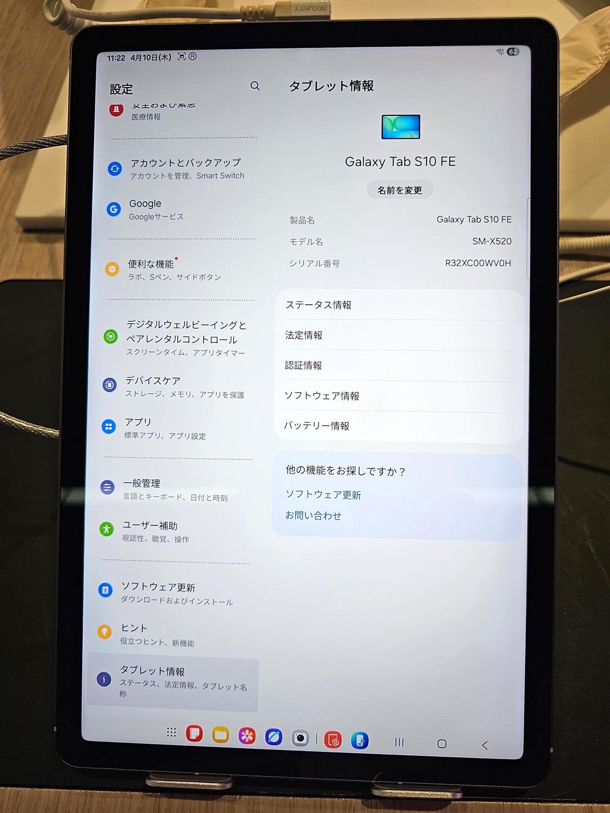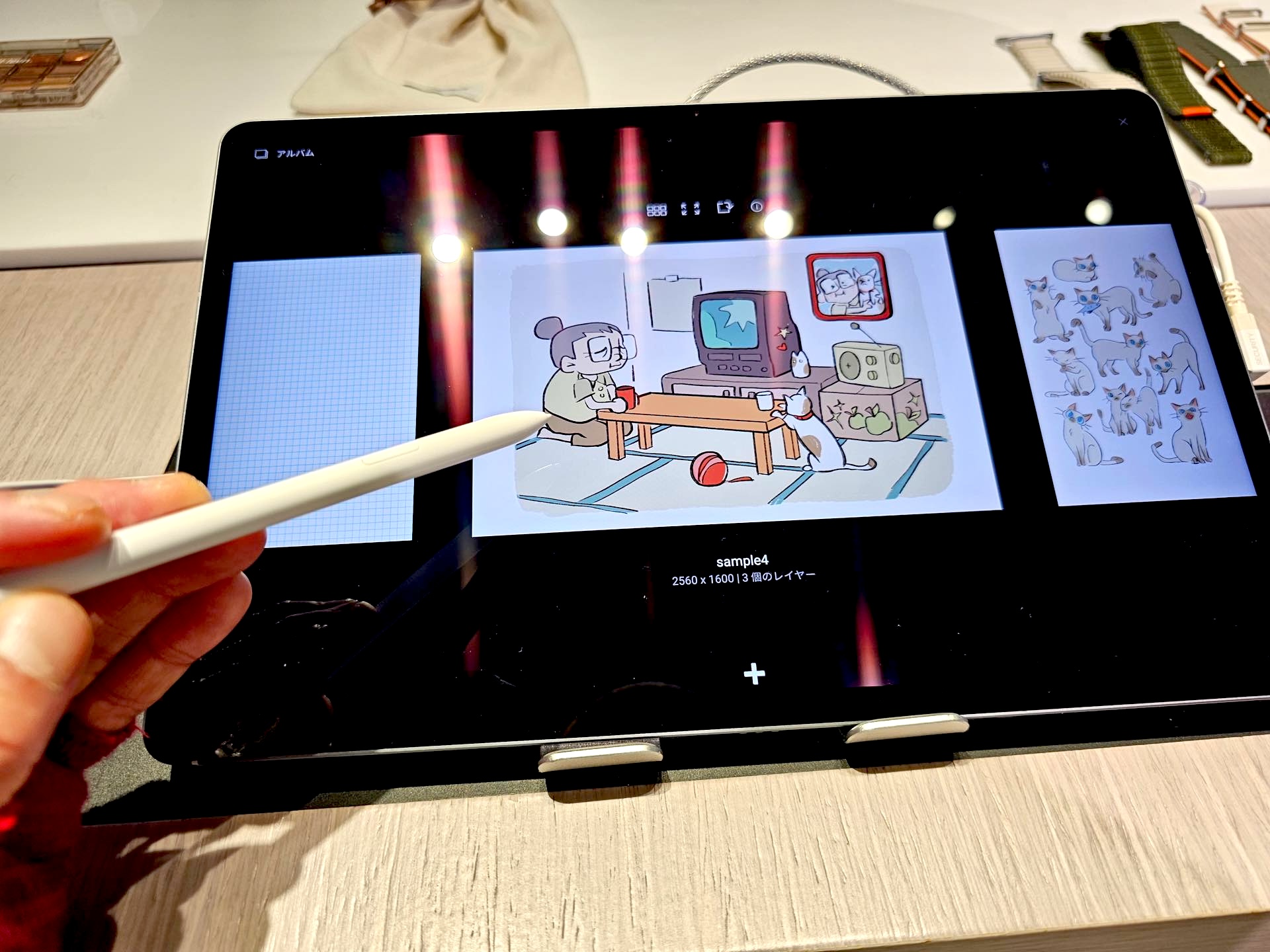 さらっと試してきましたが、少なくとも現時点では重めのゲームをしたいといった用途以外なら問題なくサクサクと動きますし、特にペン入力は上位機種のGalaxy Tab S10+やGalaxy Tab S10 Ultraと遜色はなく、しっかりと使えるため、そういった使い方であれば、価格も抑えられており、上位機種と同じ7世代のOSバージョンアップにも対応しているのでオススメできると思いました。特に上位機種は画面がGalaxy Tab S10+の12.4インチとGalaxy Tab S10 Ultraの14.6インチなので、より小さめの10.9インチのGalaxy Tab S10 FEは軽くて使い回ししやすいので良いなと思いました。