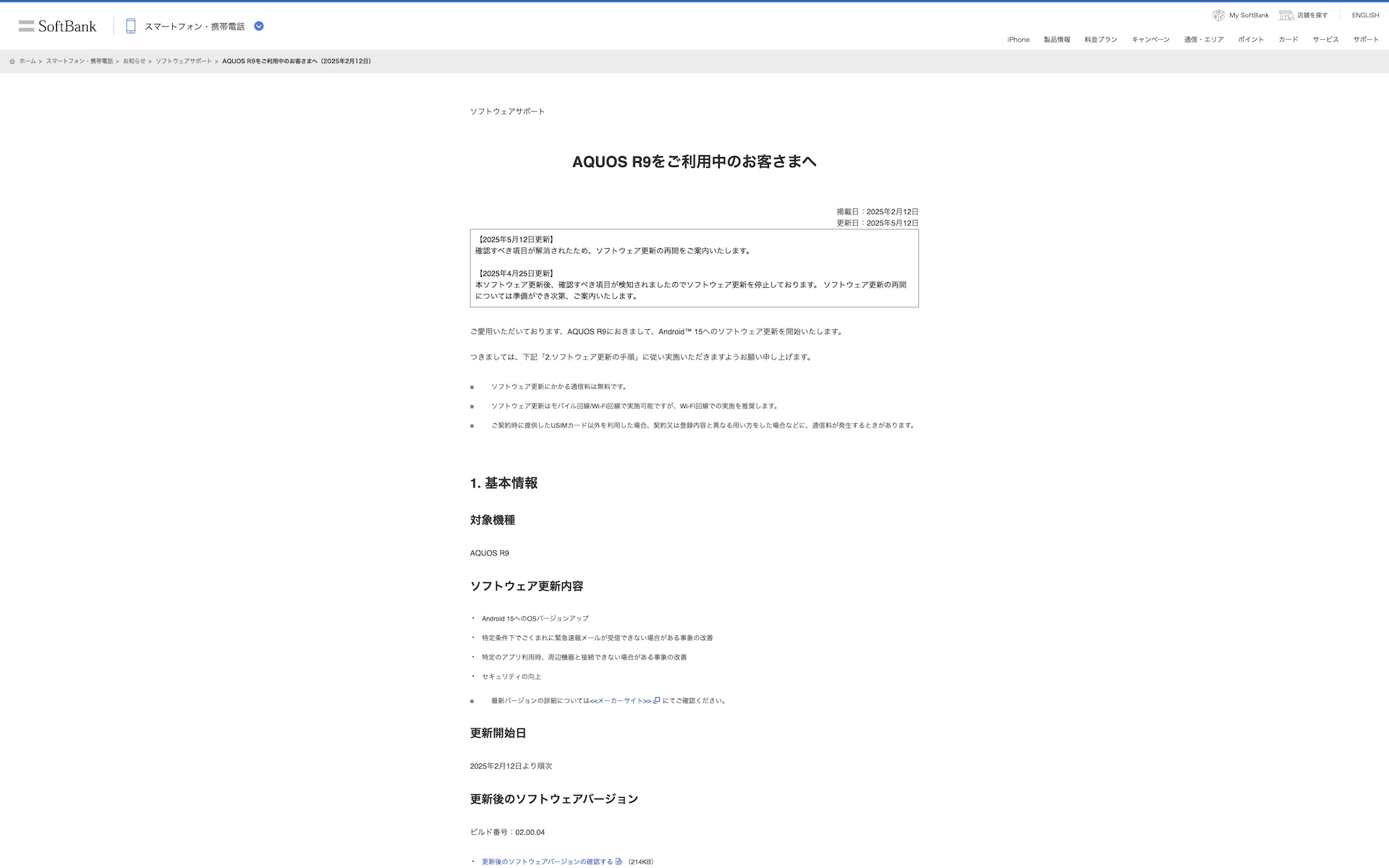 ・AQUOS R9をご利用中のお客さまへ(2025年2月12日) | スマートフォン・携帯電話 | ソフトバンク