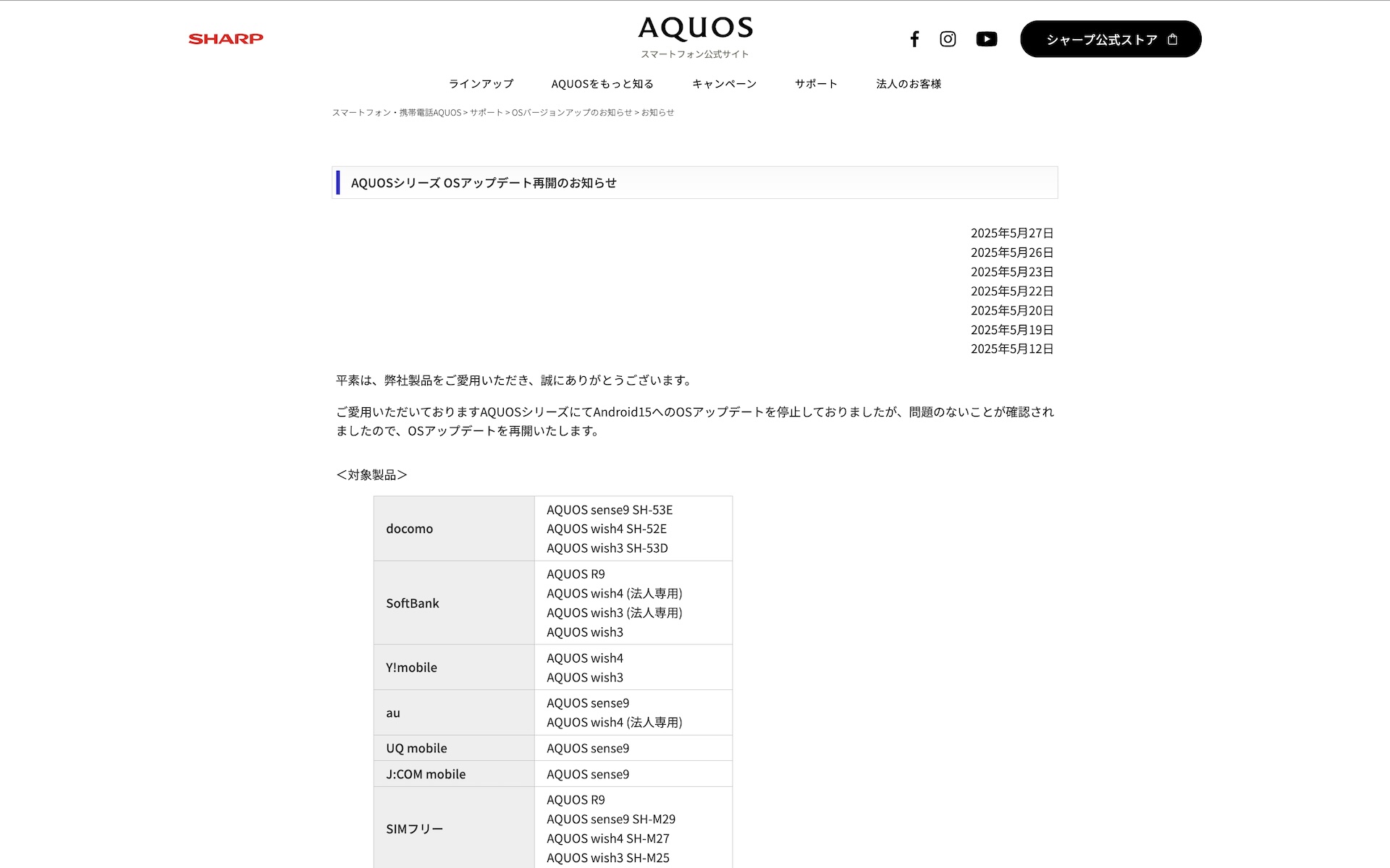・AQUOSシリーズ OSアップデート再開のお知らせ|お知らせ|よくあるご質問|AQUOS:シャープ