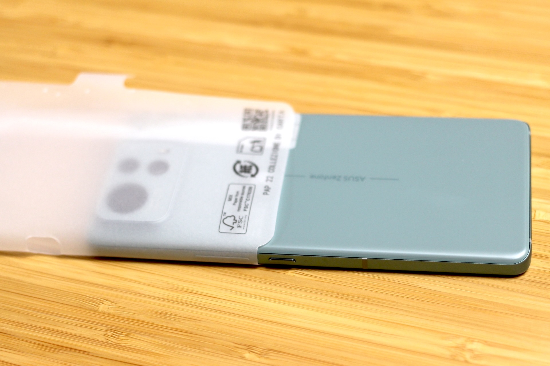 本体は半透明な保護フィルムに包まれているため、フィルムを取り外したら本体右側面にある電源キーを長押しして電源をオンにして初期設定を行って使い始めます。なお、Zenfone 10ではACアダプターが付属していましたが、Zenfone 12 UltraではZenfone 11 Ultraに続いて付属していないため、別途購入が必要なほか、画面保護フィルムも付属していないため、画面が傷つくのが気になる人はできれば事前に画面保護フィルムを購入しておいたほうが良いでしょう。