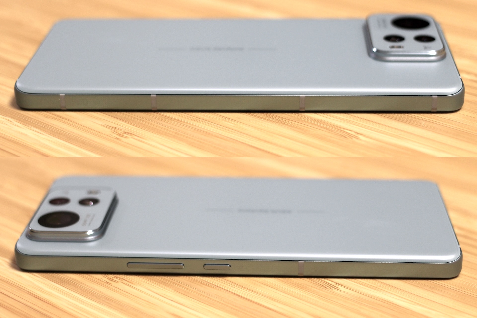 一方、背面にZenfone 11 Ultraでは本体をはみ出す大きさで鏡面仕上げでAモノグラムが描かれていましたが、Zenfone 12 Ultraではリアカメラモジュールのところに小さくAモノグラムマークが描かれるのみとなりました。代わりに背面の中央に横位置で「ASUS Zenfone」と記載され、さらにZenfone 11 Ultraではリアカメラモジュールが各色ともに黒でしたが、Zenfone 12 Ultraではリアカメラモジュール部分も背面パネルの色と合わせられています。