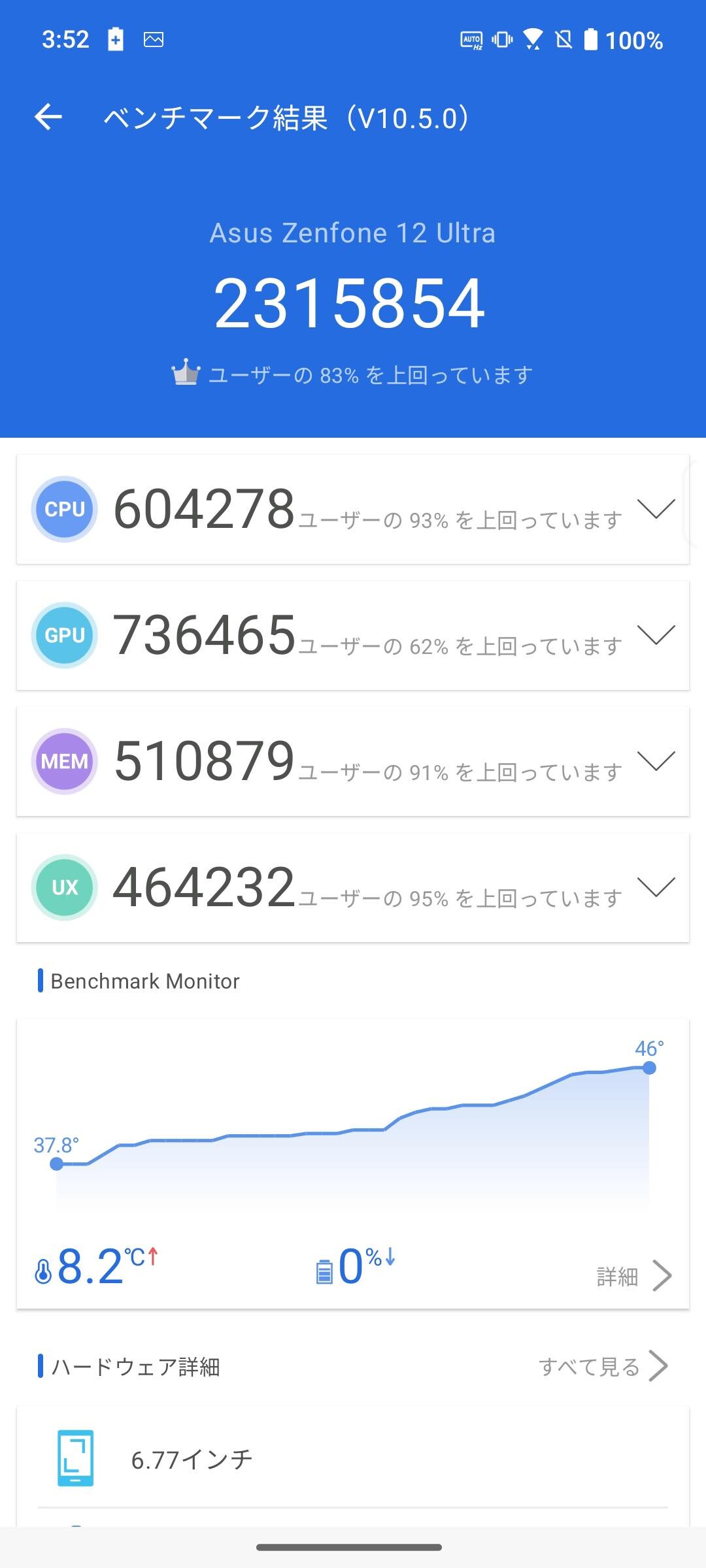 Zenfone 12 UltraはASUSが展開しているZenfoneブランドにおける新しいフラッグシップスマホで、昨年発売された前機種「Zenfone Zenfone 11 Ultra」に続いて“Ultra”を冠する大画面スマホとなっており、新たにチップセット(SoC)には3nmプロセス(TSMC N3E)で製造されたQualcomm製「Snapdragon 8 Elite Mobile Platform(型番:SM8750-AB)」(オクタコアCPU「4.32GHz Oryon V2 Phoenix Lコア×2+3.56GHz Oryon V2 Phoenix Mコア×6」、ドデカコアGPU「1.2GHz Adreno 830」)を搭載して高性能化しています。