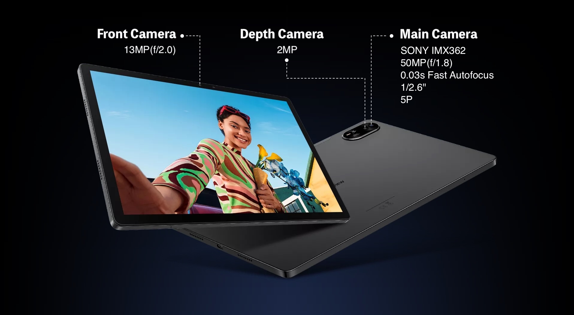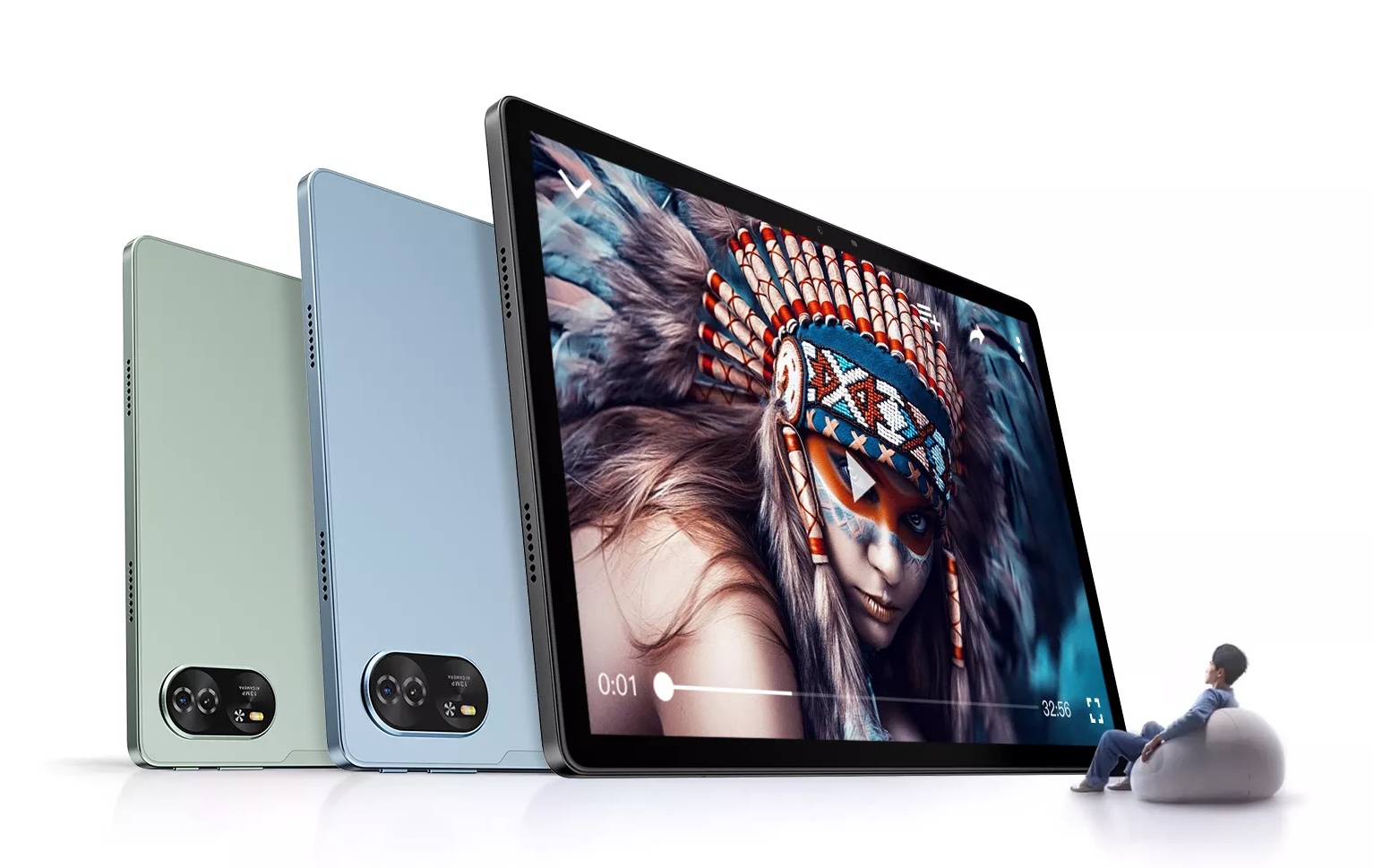 さらに画面占有率も81.5%に達してベゼルがわずか7mmというスタイリッシュなデザインが実現され、外観はアルミニウム合金の金属ボディーで高級感のあるスタイルに仕上がりとなっているとのこと。サイズは約302.0×197.5×7.85mm、質量は約736gと、大画面ながらも薄く軽くなっており、本体色はSpace Grey(グレー)およびTwilight Blue(ブルー)、Lagoon Green(グリーン)の3色がラインナップされていますが、現時点ではAmazon.co.jpではグレーとブルーの2色のみが販売されています。