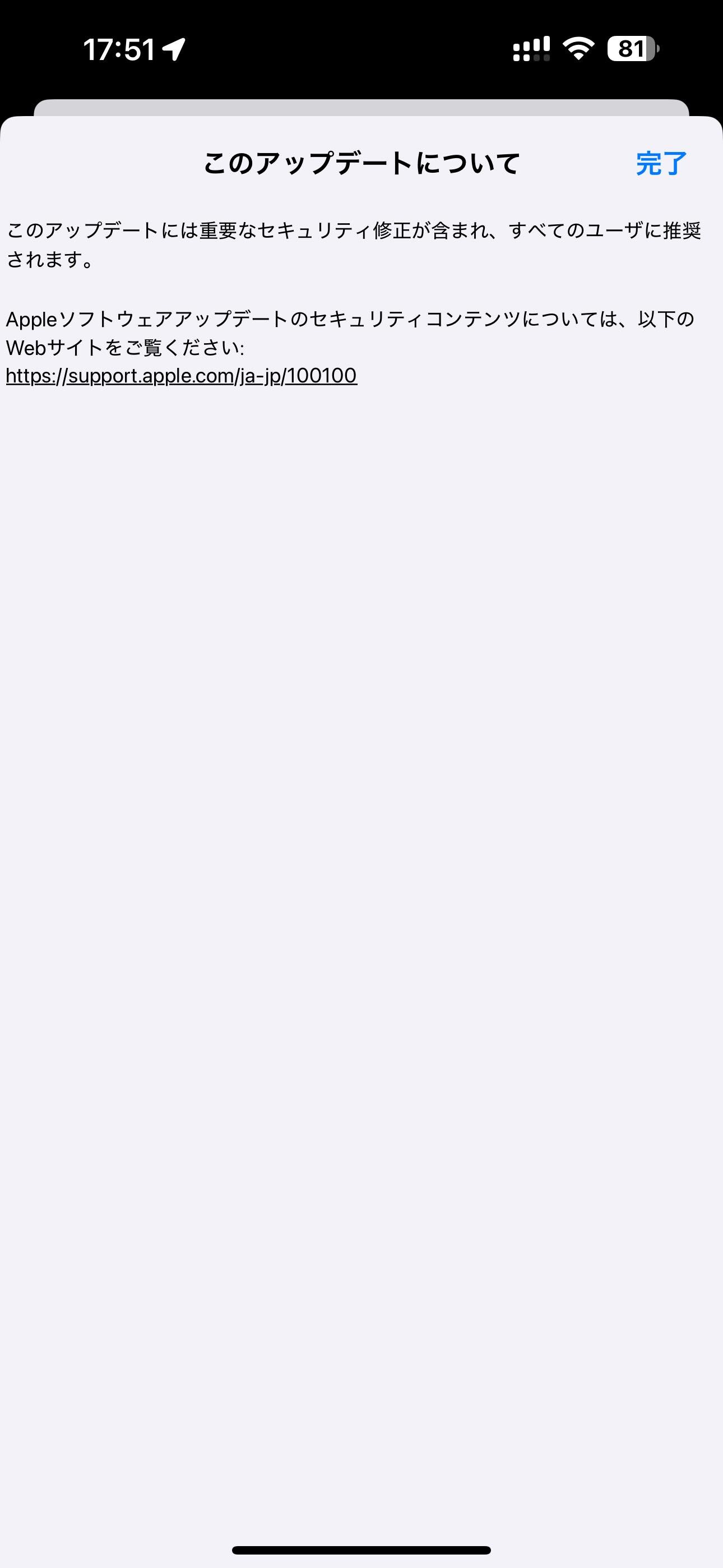 更新は従来通り各製品本体のみでOTA(On-The-Air)によりダウンロードで行え、方法としては、「設定」→「一般」→「ソフトウェア・アップデート」から行え、単体でアップデートする場合のダウンロードサイズは手持ちのiPhone 15 Pro MaxでiOS 18.6.1からだと486.5GBとなっています。またiTunesをインストールしたWindowsおよびMacとUSB-Lightningケーブルで接続しても実施できます。なお、Appleが案内しているアップデートの内容およびセキュリティーコンテンツの修正は以下の通り。