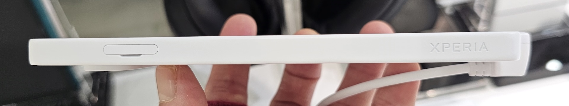 Xperia 10 VIIの左側面にはSIMカードやmicroSDカードのスロット(トレイ)と「XPERIA」ロゴが配置されています。なお、カードスロットはSIMピンを必要とせず、爪などで引っ掛けて開けるタイプです