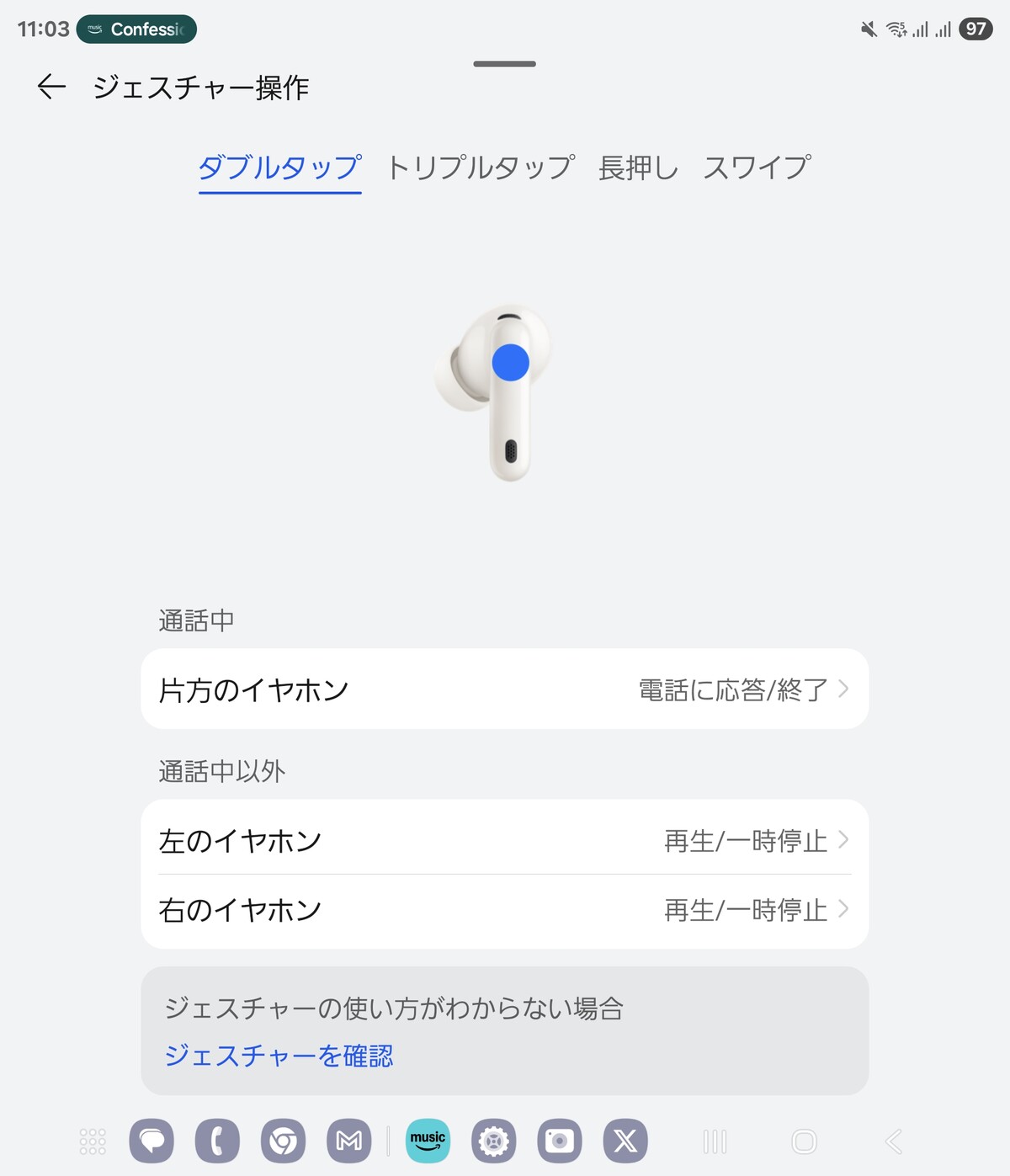 | タッチコントロール | 対応(ダブルタップ:再生/一時停止/通話応答/通話終) |