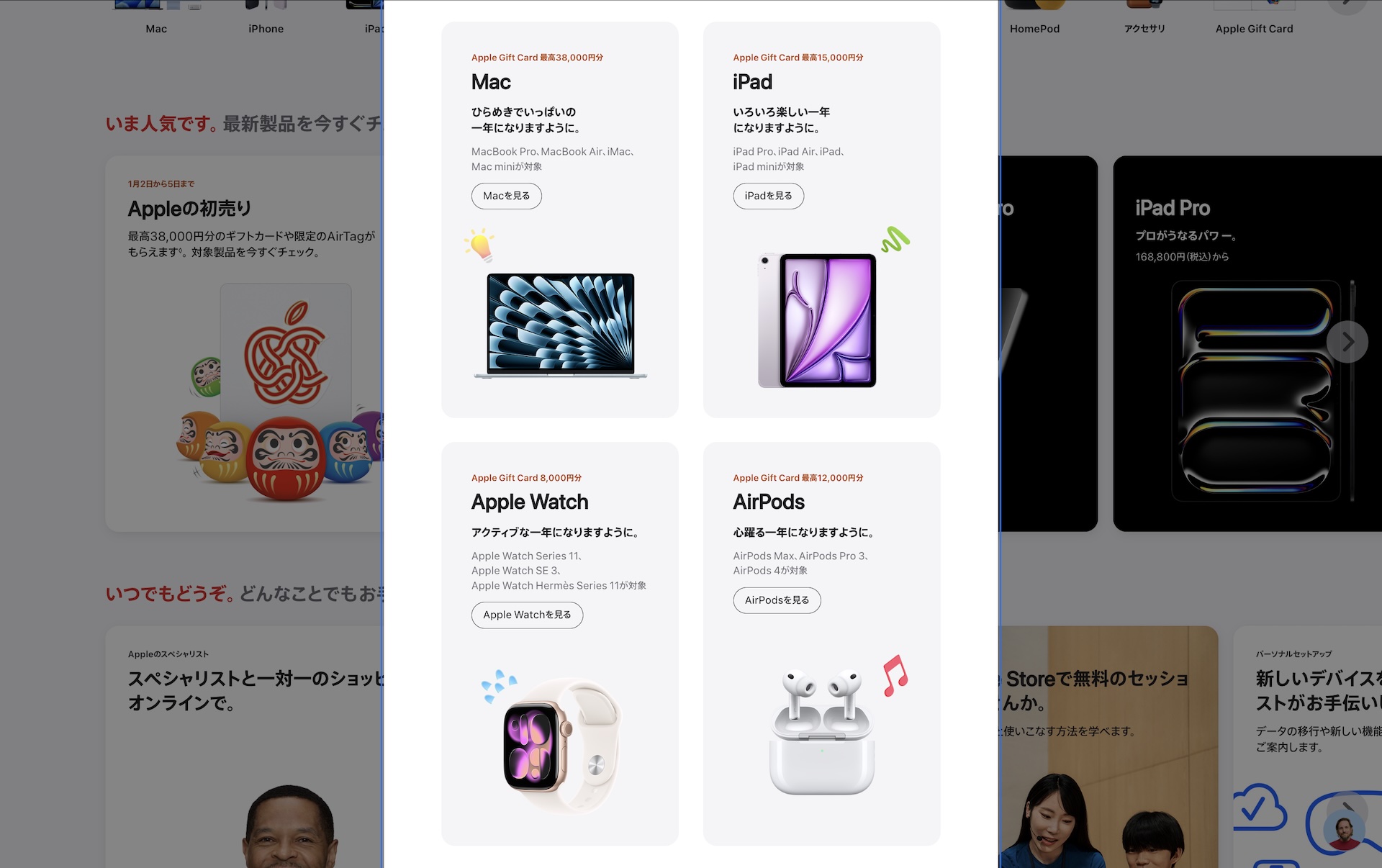 ・Appleの初売り - 最高38,000円分のギフトカードがもらえます - Apple(日本)