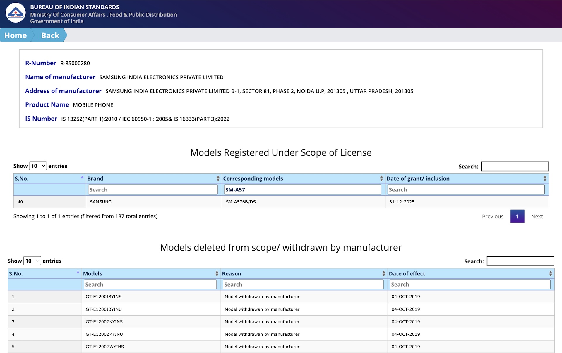 なお、これまでにGalaxy A55 5GやGalaxy A54 5GはKDDIおよび沖縄セルラー電話向けが発売されていましたが、少なくとも現時点ではGalaxy A57 5Gは取り扱わないようです。その他、Galaxy A57 5Gはまだ海外でも未発表な機種であるため、詳細は不明ではありますが、インド共和国(以下、インド)の標準規格(Bureau of Indian Standards:BIS)において「SM-A576B/DS」が2025年12月31日(水)付で認証を取得しており、日本を含めたグローバル市場で2026年春〜夏頃に登場すると予想されます。