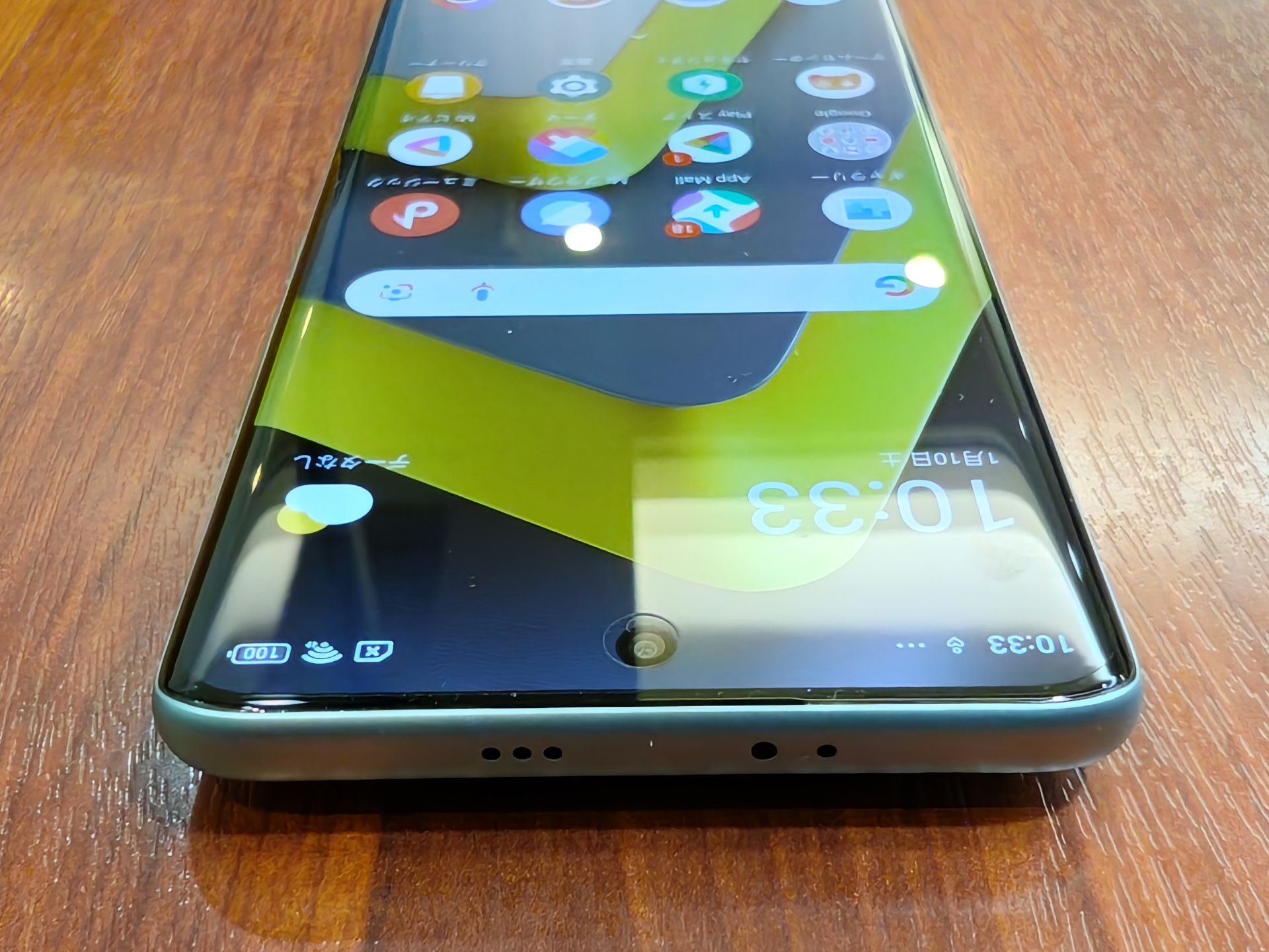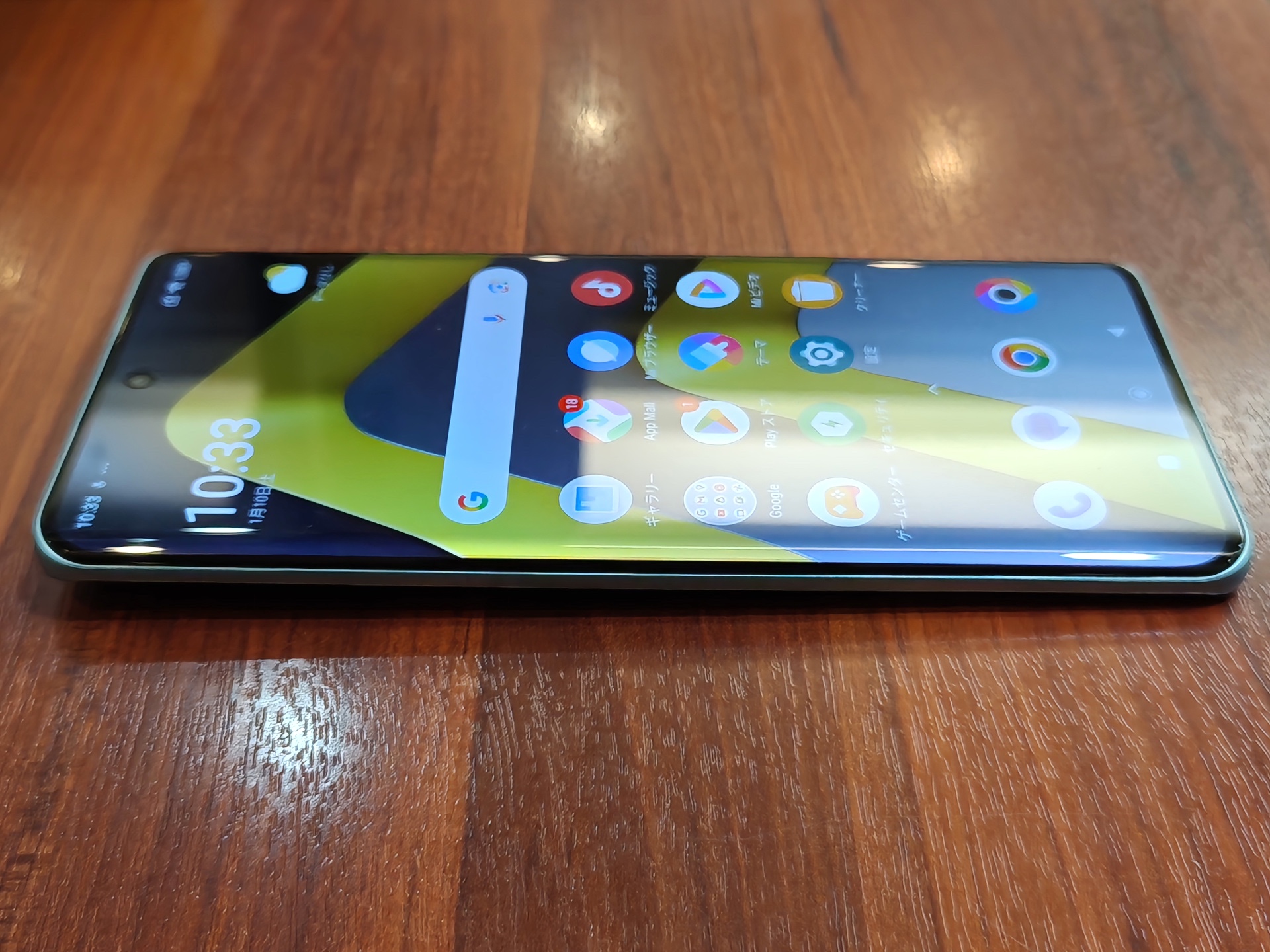 画面は上部中央にパンチホールを配置したアスペクト比9:19.9の縦長な約6.77インチFHD+(1080×2392ドット)Flow AMOLED(有機EL)ディスプレイ(約388ppi)で、画面の左右両端が湾曲した3Dカーブデザインとなっており、エッジ(画面端)まで映像が表示されるため、ゲームや動画視聴への没入感が高くなります。本体カラーは3色(ブラック、シルバー、グリーン)で、今回はグリーンをお借りしました。