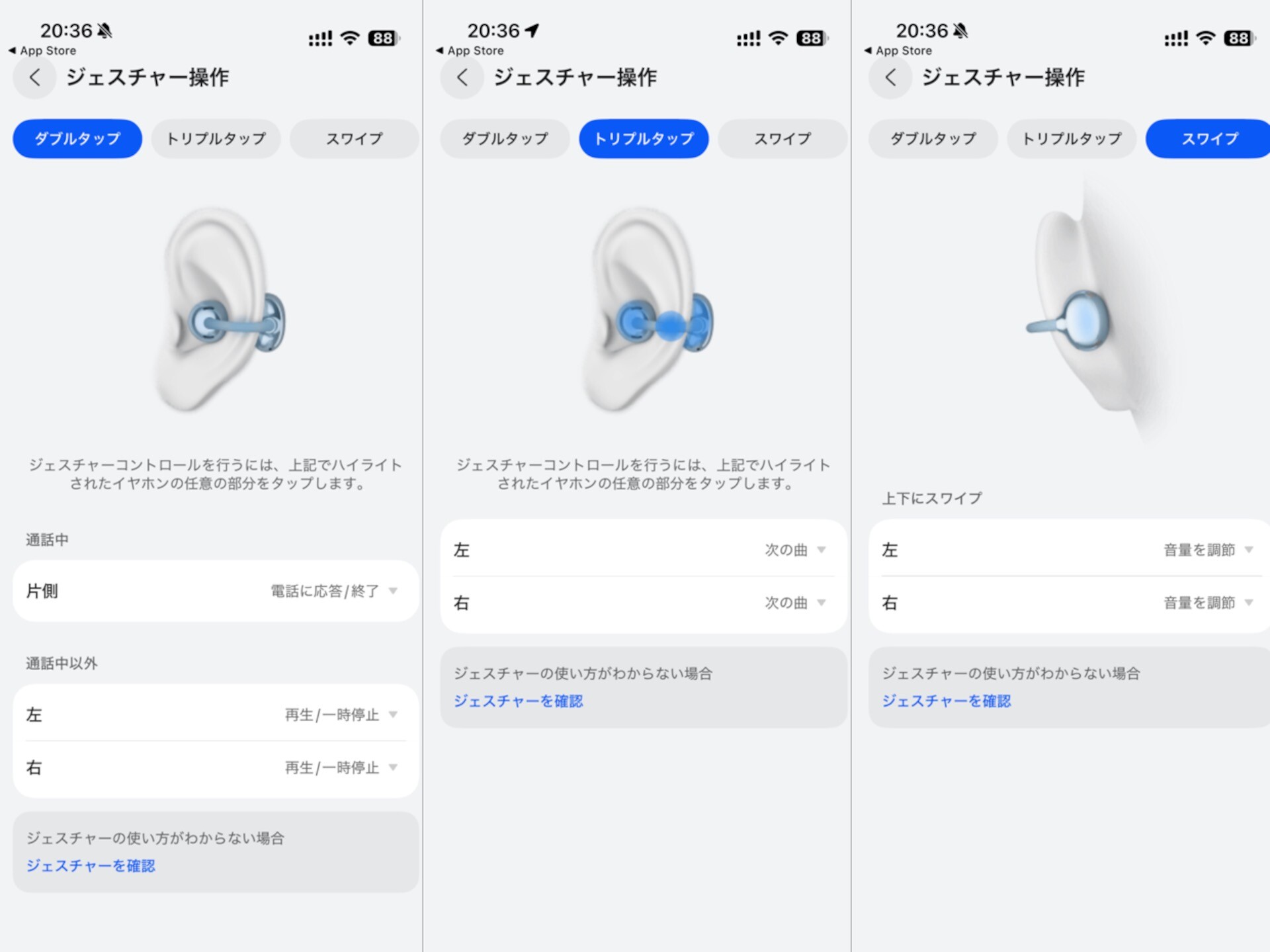 もちろんジェスチャー操作の設定が可能で、タッチコントロールはビーンズ部分のスライド操作が追加され、音量調整や曲送りが操作しやすくなりました。また2回または3回タップ(アコースティックボール、コンフォートビーンズ、C-bridge)にて操作ができます。さらにヘッドコントロール、スマート装着検出、左右の自動切換えの設定も可能です。