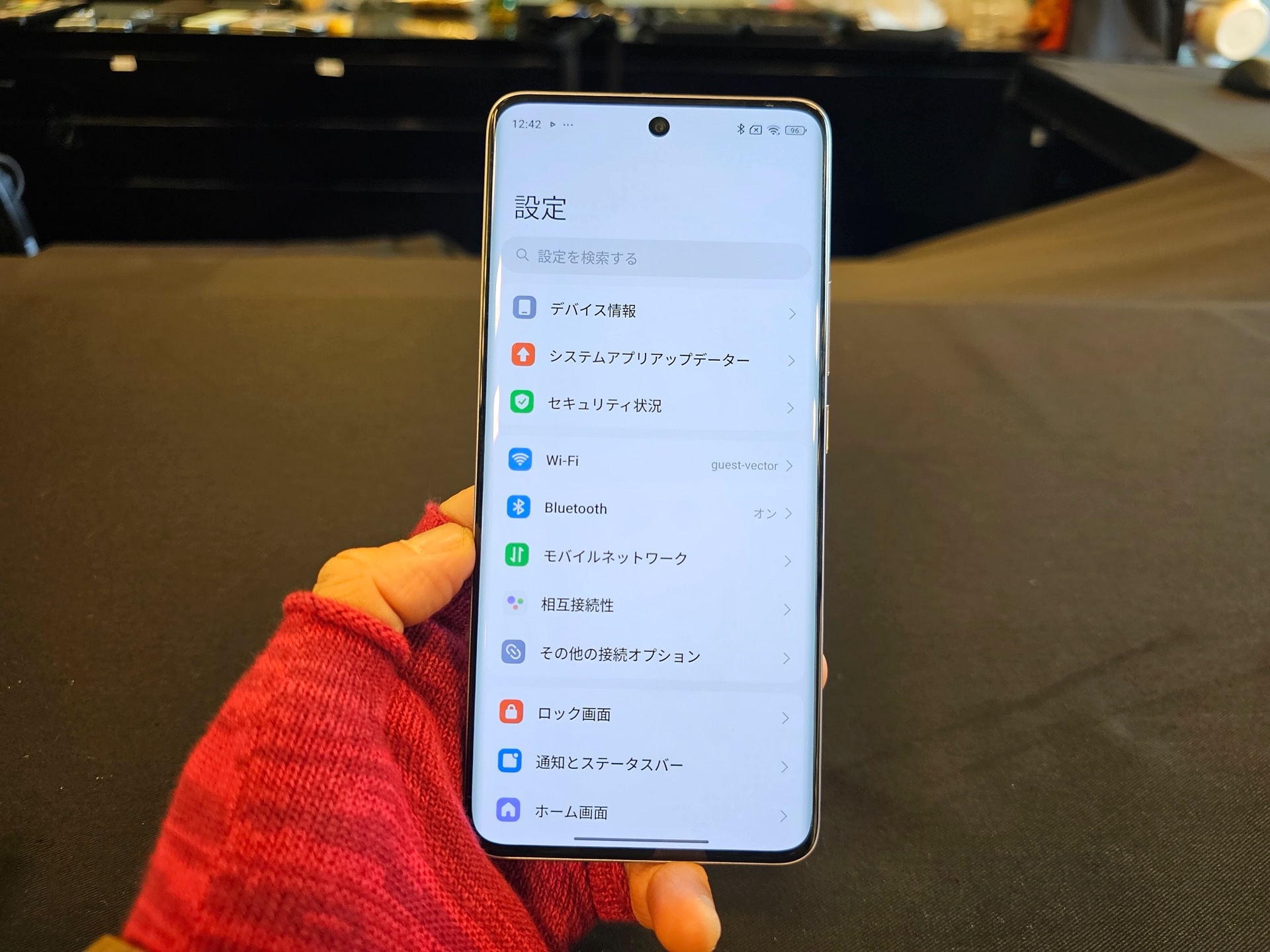 設定の「デバイス情報」。デモ機では内蔵ストレージの512GBのうちの約50GBが使われていました。一方、ソフトウェアはバージョン「2.0.205.0.VPQMIXM」で、グローバル版と同じなのでOSバージョンアップなどの配信も 早めになりそうではあります