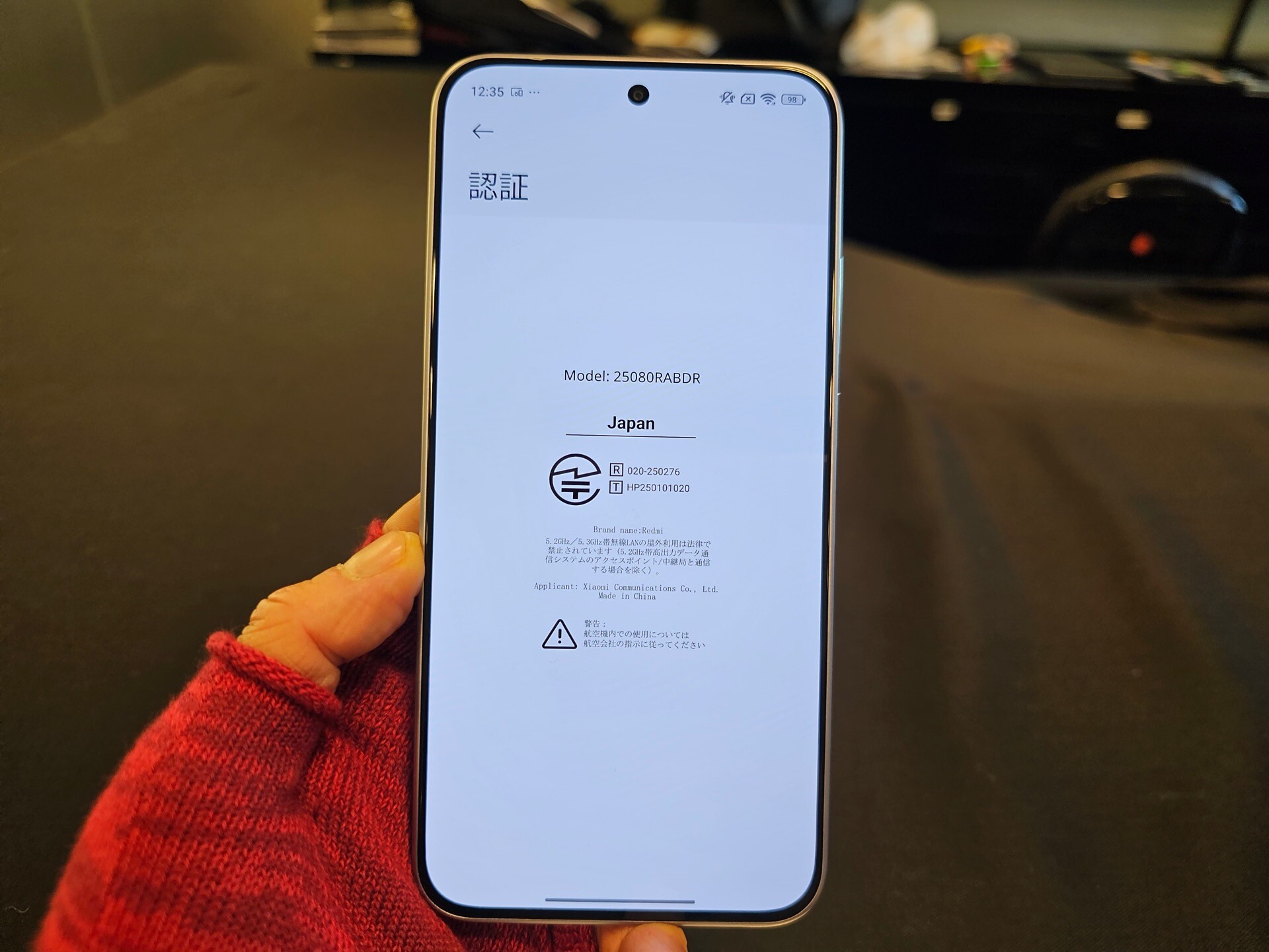日本向けの認証(いわゆる「技適」)の認証番号は電波法に基づく工事設計認証(R)が「020-250276」、電気通信事業法に基づく技術基準適合認定(T)が「HP250101020」。なお、Made in China(中国製)です