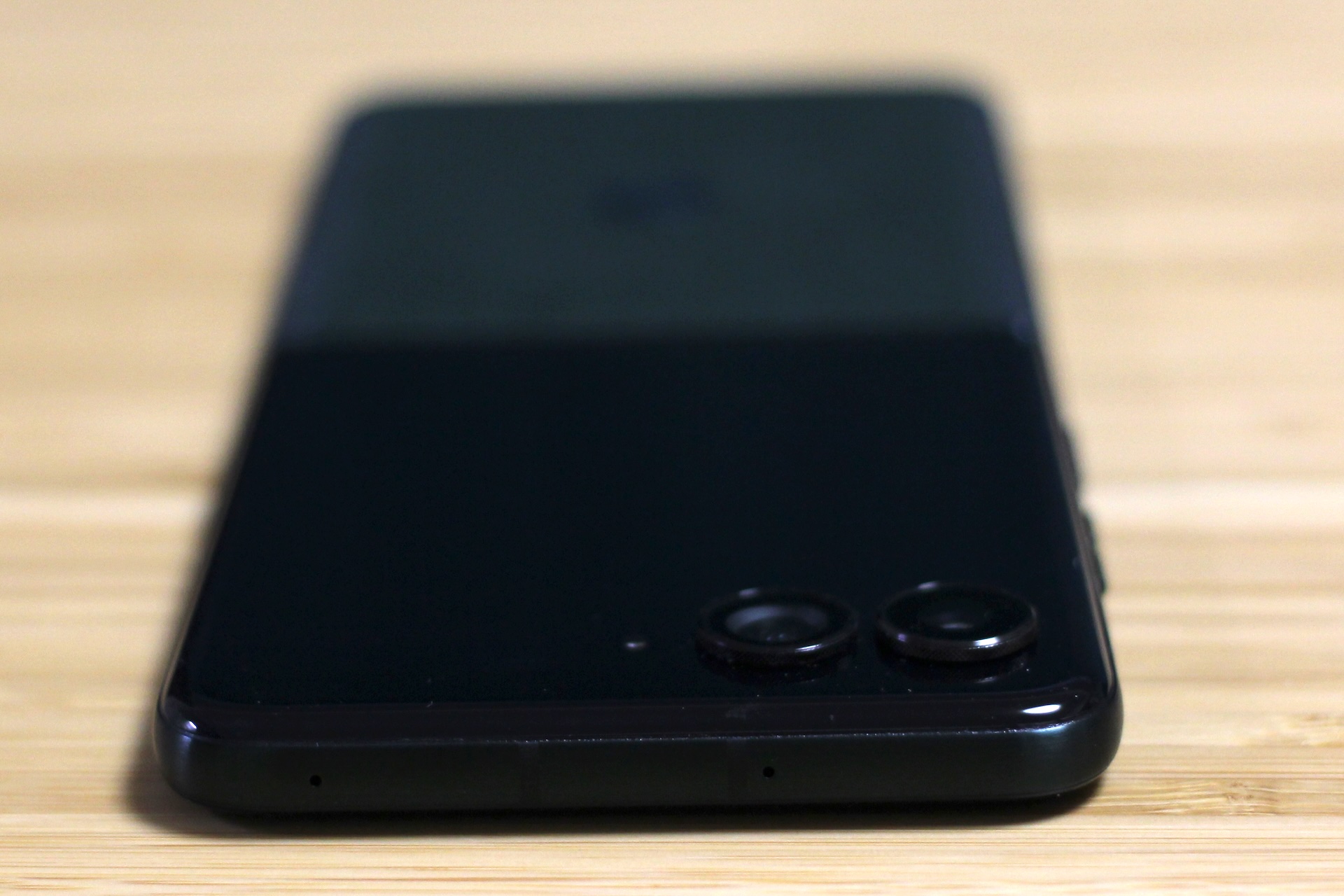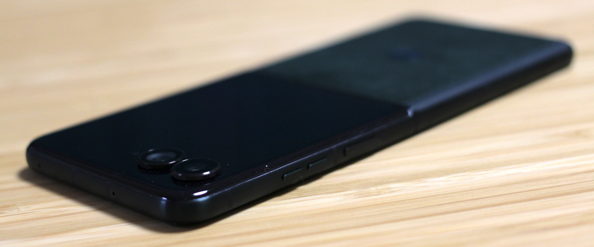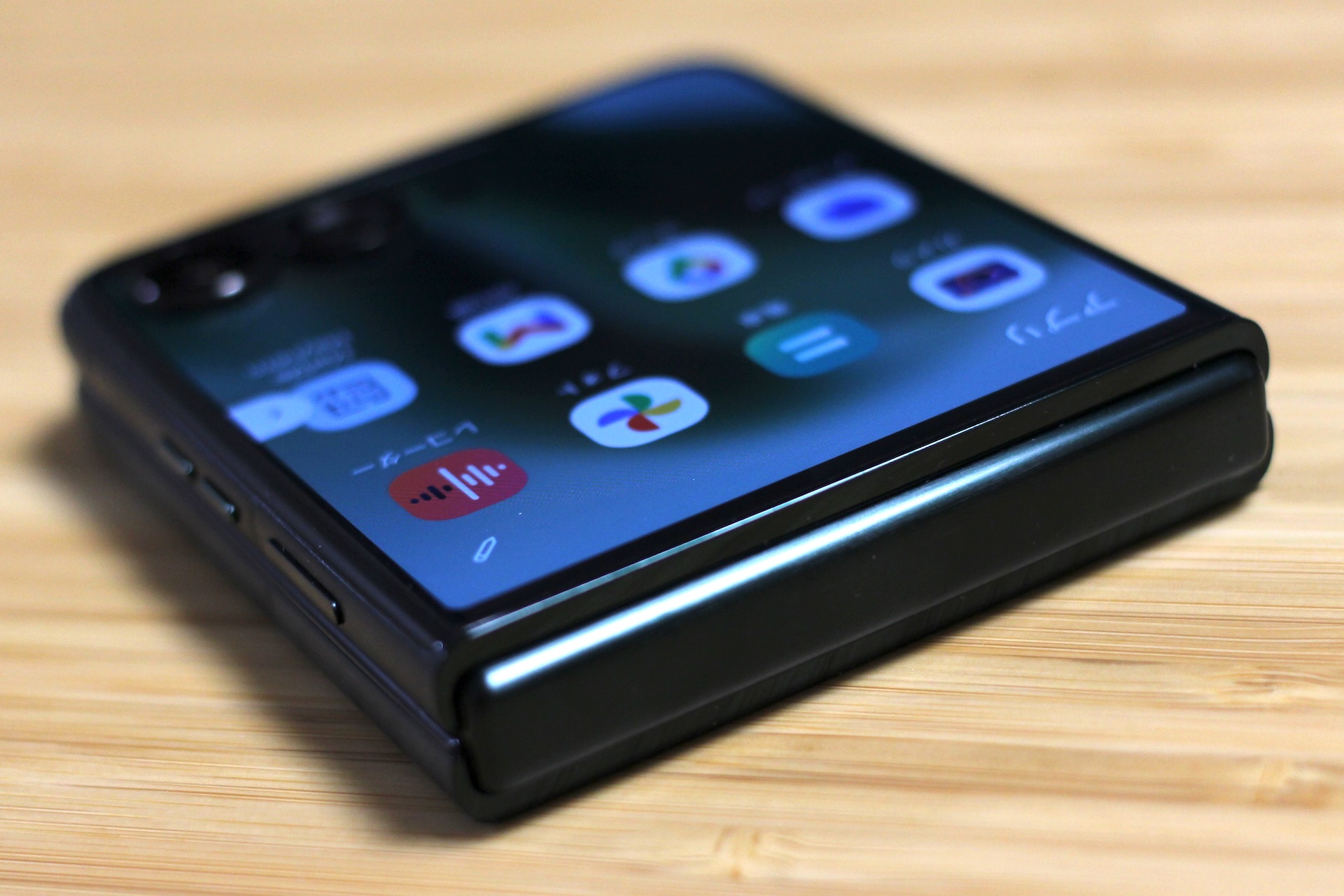 開くと上部中央にパンチホールが配置されたアスペクト比9:22の縦長な約7.0インチSuper HD(1224×2992ドット)pOLED(有機EL)メインディスプレイ(約464ppi)、閉じると約4.0インチ1272×1080ドットpOLED(有機EL)サブディスプレイ(約417ppi)が搭載されており、メインディスプレイは折り畳めるLTPO AMOLEDパネル、サブディスプレイもフレキシブルLTPO AMOLEDパネルが採用されています。メインディスプレイは薄い樹脂とガラスで折り目が目立たなくなっているとされていますが、実際に手にしてみるとやはり折り目はまったく気にならないということはなく、購入したばかりで正面から見ても多少折り目が判別できるくらいです。
