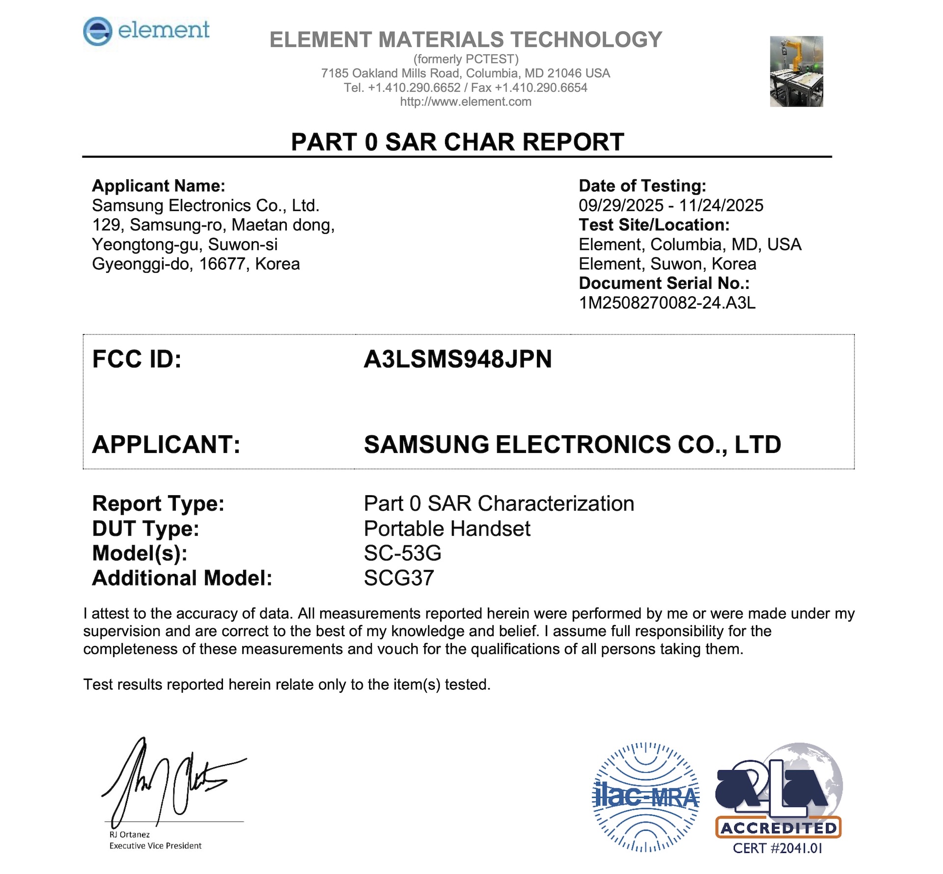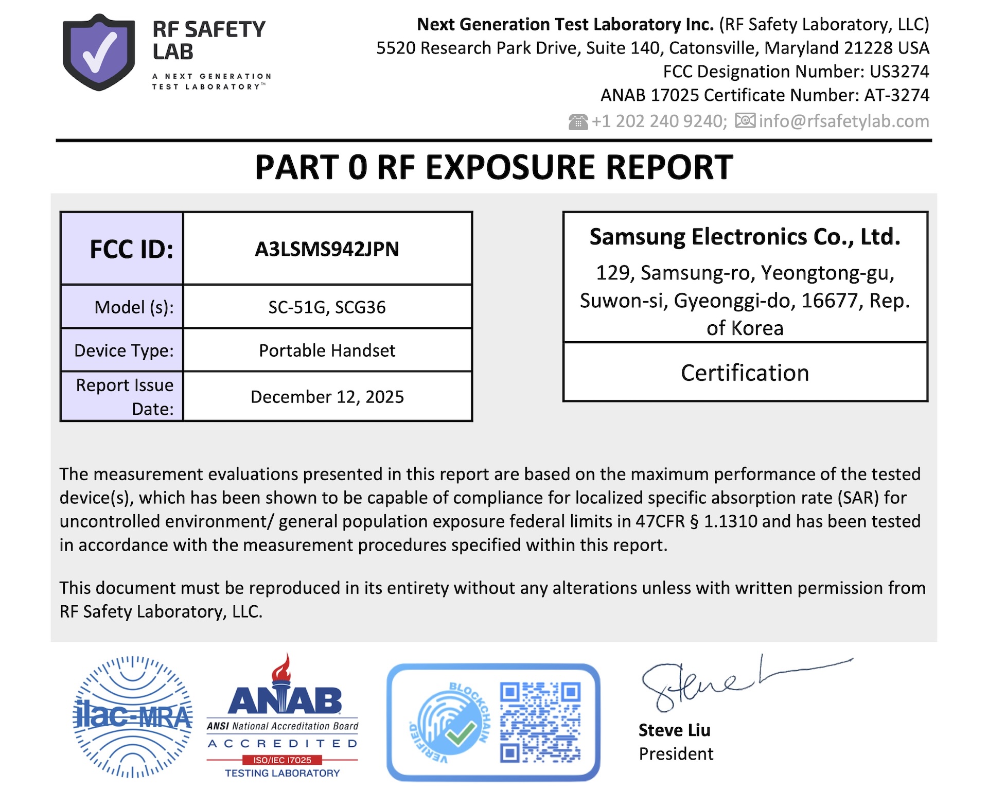 FCC ID(認証番号)はSC-51GとSCG36が「A3LSMS942JPN」、SC-52GとSCG38が「A3LSMS947JPN」、SC-53GとSCG37が「A3LSMS948JPN」で、これらの機種は現時点では未発表のため、詳細は不明ですが、FCC IDや型番の規則からSC-51GとSCG36は次期フラッグシップスマホ「Galaxy S26」シリーズの標準モデル「Galaxy S26」、SC-52GとSCG38は大画面モデル「Galaxy S26+」、SC-53GとSCG37は最上位モデル「Galaxy S26 Ultra」のそれぞれNTTドコモ向けとKDDI・沖縄セルラー電話の携帯電話サービス「au」向けとなると予想されます。