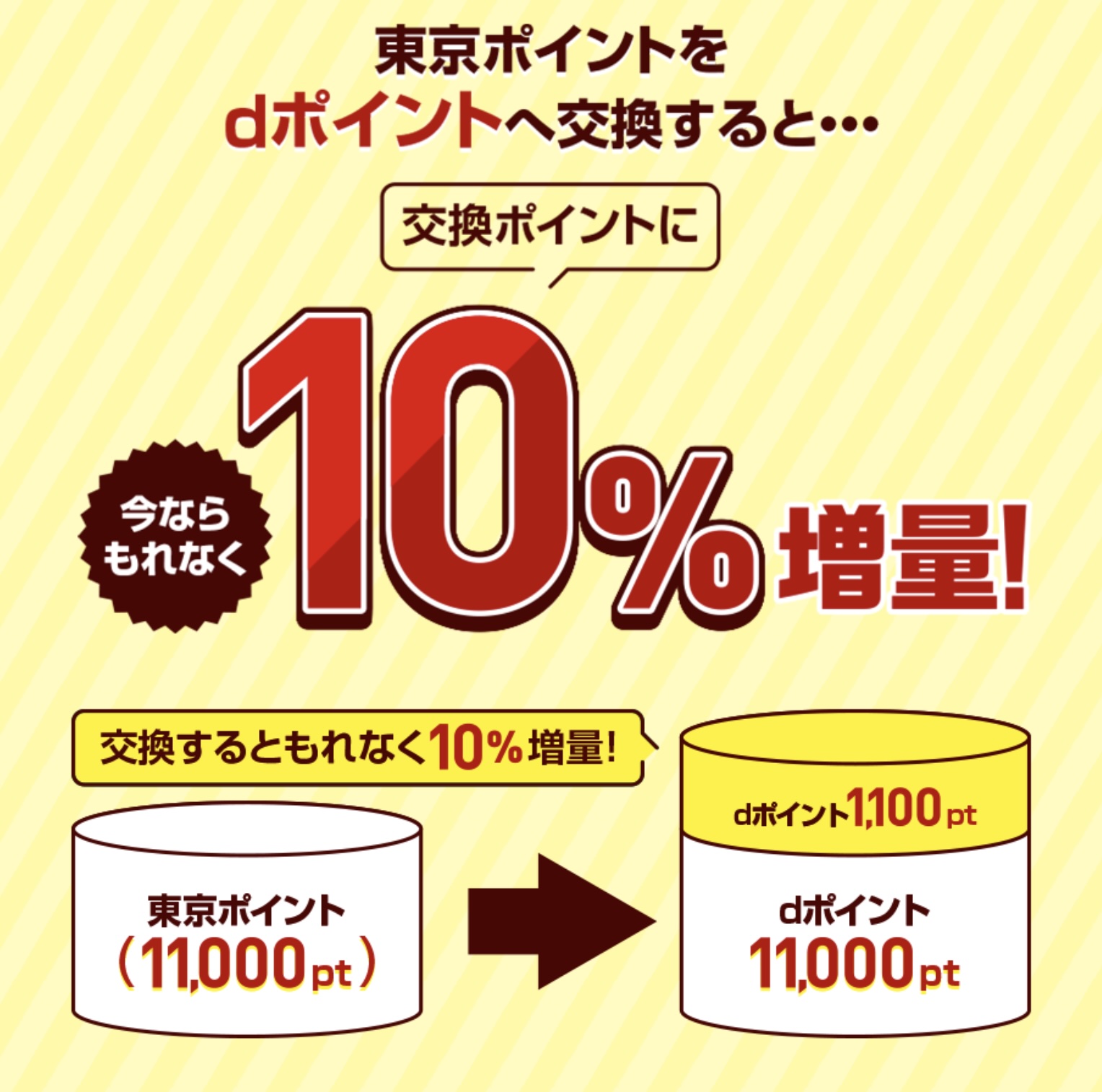 ・「東京ポイントからdポイントへの交換で+10%もらえるキャンペーン」を開催!-「東京ポイント」をdポイントに交換することで、よりおトクにポイントがたまる!-(PDF形式:505KB) | お知らせ | NTTドコモ