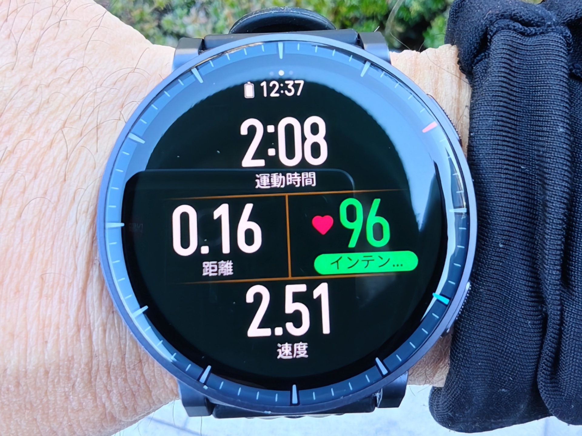 さらに大画面ディスプレイは視認性が良く、ワークアウト中のデータ確認も行いやすくなっています。もちろん大容量電池かつ大画面なのでスマートウォッチとしては大きなサイズとなりますが、重量バランスが良いため、1日装着していても負荷が少なく感じます。スマートウォッチをハードに活用したい人でコスパを重視する場合に特にオススメだと感じました。