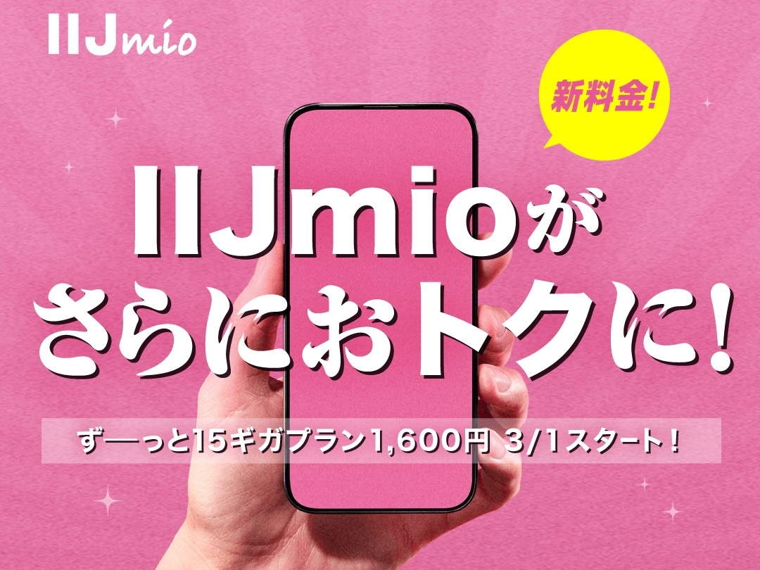 インターネットイニシアティブ(以下、IIJ)は3日、同社が移動体通信事業者(MNO)から携帯電話回線を借り入れて仮想移動体通信事業者(MVNO)として提供している携帯電話サービス「IIJmio」( https://www.iijmio.jp )における料金プラン「ギガプラン」の月間高速データ通信容量15GBの15ギガプランを2026年3月1日(日)より改定すると発表しています。既存の利用者も自動的に改定されるとのこと。