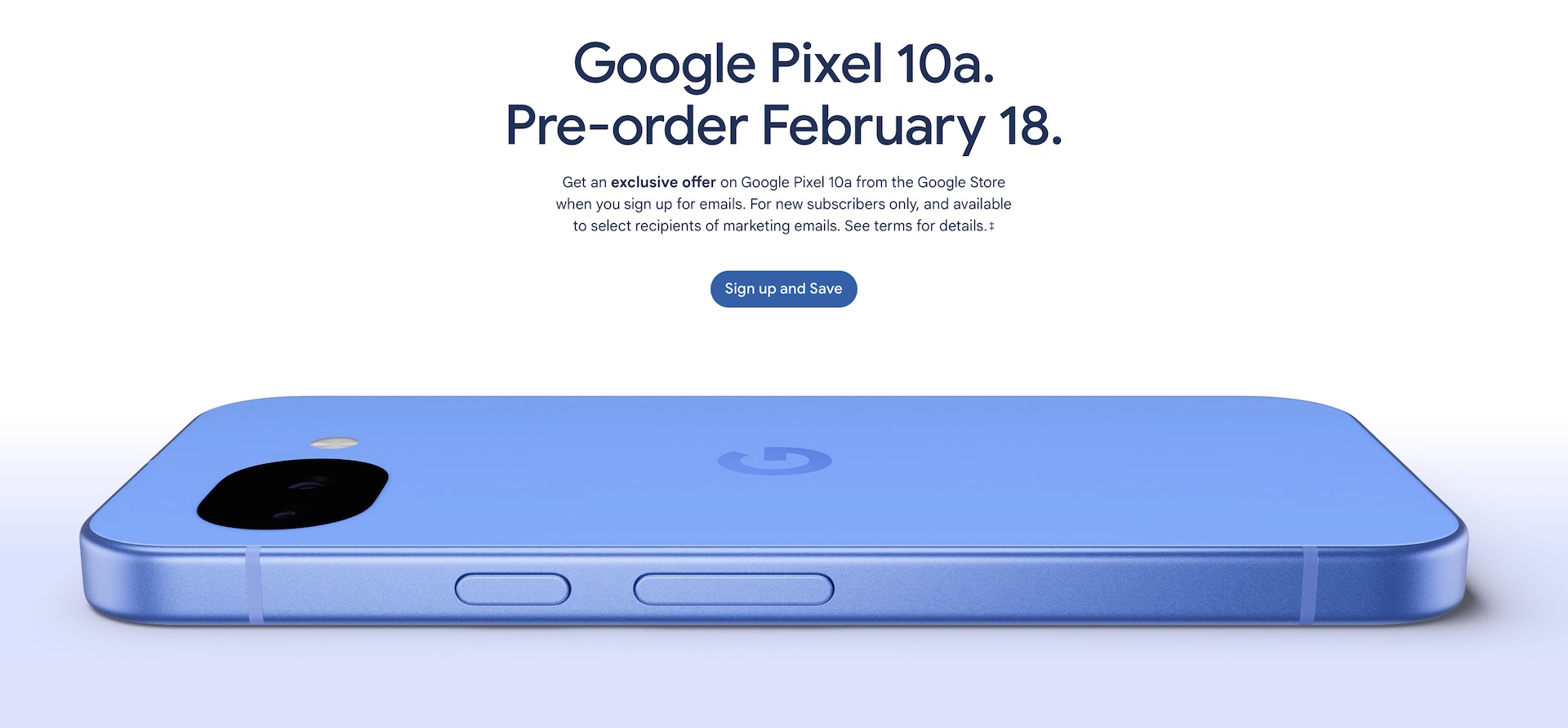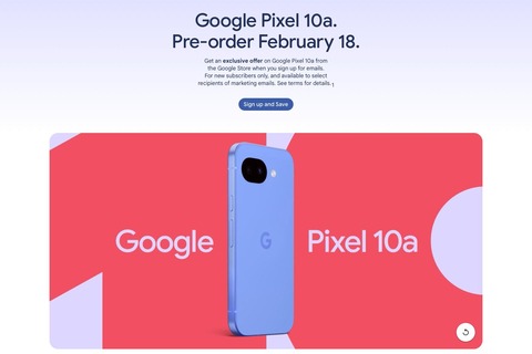 現時点では日本向けの公式Webショップ「Google ストア」では案内されていないものの、アメリカ合衆国(以下、アメリカ)向け「Google Store」( https://goo.gle/3M9lXOd )では2026年2月18日(水)に予約販売を開始すると案内されています。またGoogle Storeでメール配信登録をすると、Pixel 10aがお得に購入できる限定特典が新規登録者限定かつメール受信者限定でプレゼントされるとのこと。