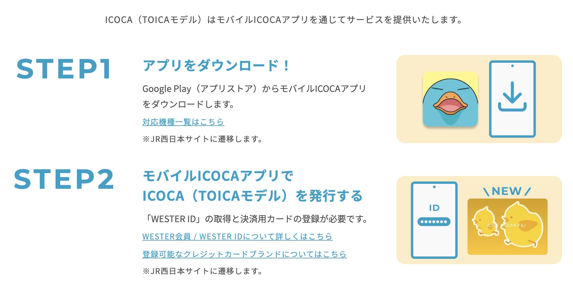 なお、TOICAのモバイルICサービスはすでに紹介しているようにJR西日本が提供するFeliCaを用いた電子マネー・交通系乗車券「ICOCA」の機能をスマホなどで利用できる「モバイルICOCA」の仕組みを活用しており、Androidについてはアプリ「モバイルICOCA」(以下、モバイルICOCAアプリ)にて「WESTER ID」の取得と決済用カードの登録を行い、「ICOCA(TOICAモデル)」を発行して利用するようになっています。