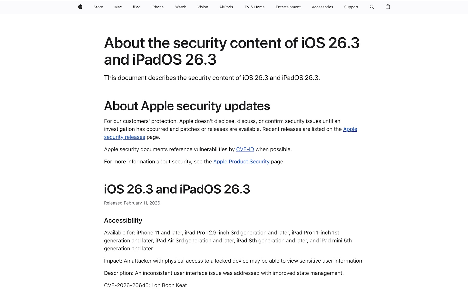 ・iOS 26.3およびiPadOS 26.3のセキュリティコンテンツについて - Apple サポート (日本)