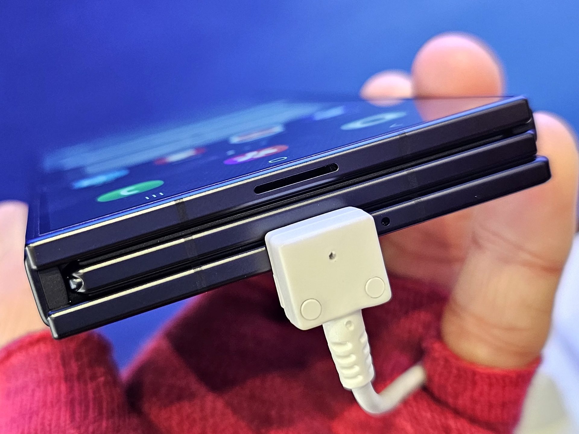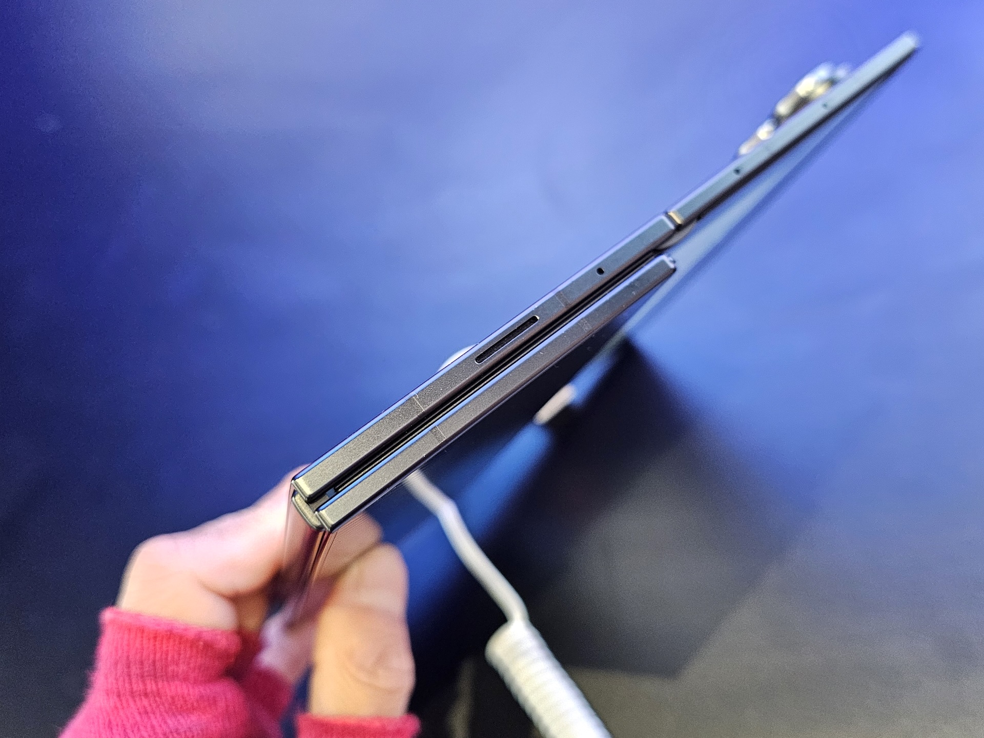 また10インチの画面を3つ折りにしてポケットに収めるために開発された新たなディスプレイ技術を採用しており、デュアルフォールド構造に求められる耐久性を確保するため、衝撃吸収層の上に強化オーバーコートを加えることによってディスプレイ全体の耐衝撃性と耐久性を一段と向上させ、優れた薄さと剛性と軽量を両立させたフレーム設計によって折りたたみ時にスクリーン同士が接触することを防ぎ、薄さを維持しつつひび割れへの耐性を高め、引き続いて防水・防塵(IP48)をサポートしています。生体認証としては指紋認証(側面)や顔認証に対応しています。