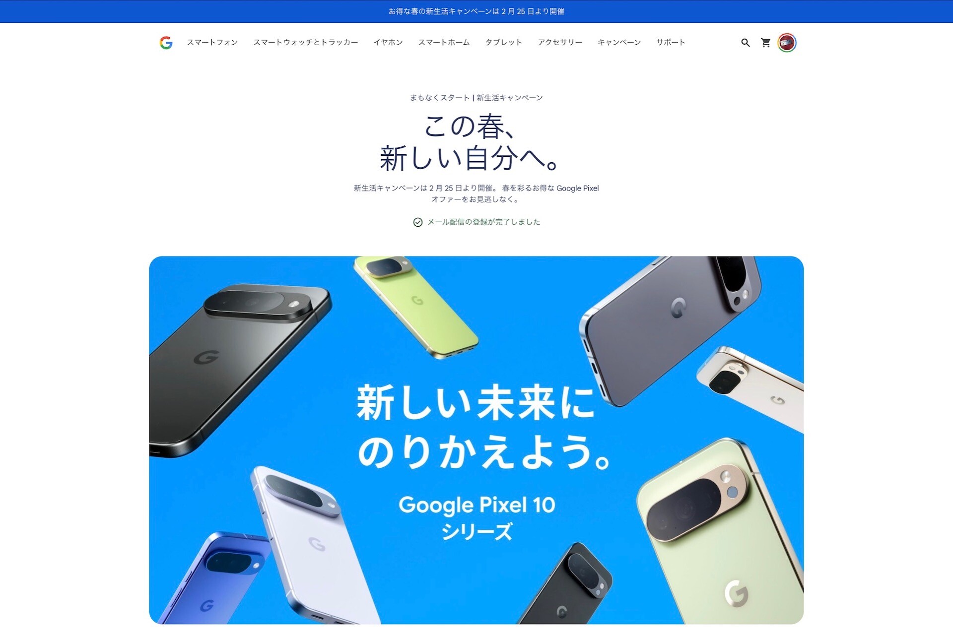 | Google ストアで「新生活キャンペーン」が2月25日〜3月31日まで開催!Pixel 10が初の割引に |