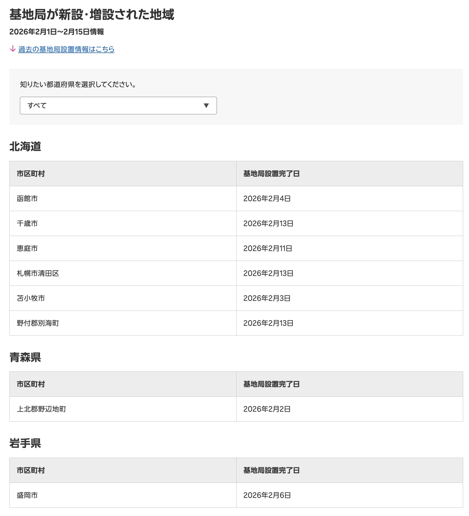 | 楽天モバイルが2026年2月1〜15日に設置した基地局リストを公開!2026年前半にJR山手線の全駅が5G対応に |