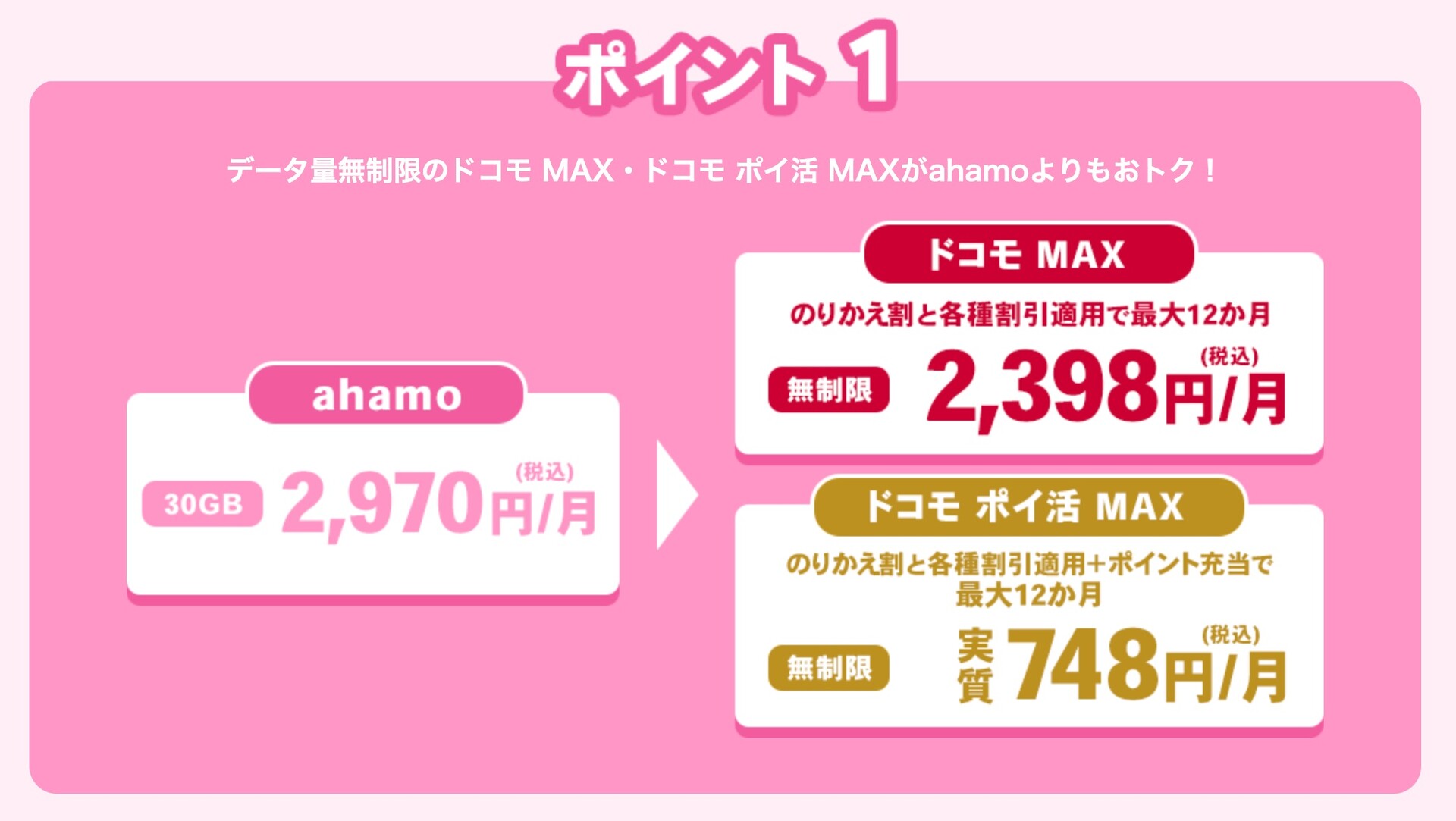 | ahamo→MAXのりかえ割 <最大12カ月間> | ▲2,200円/月 |