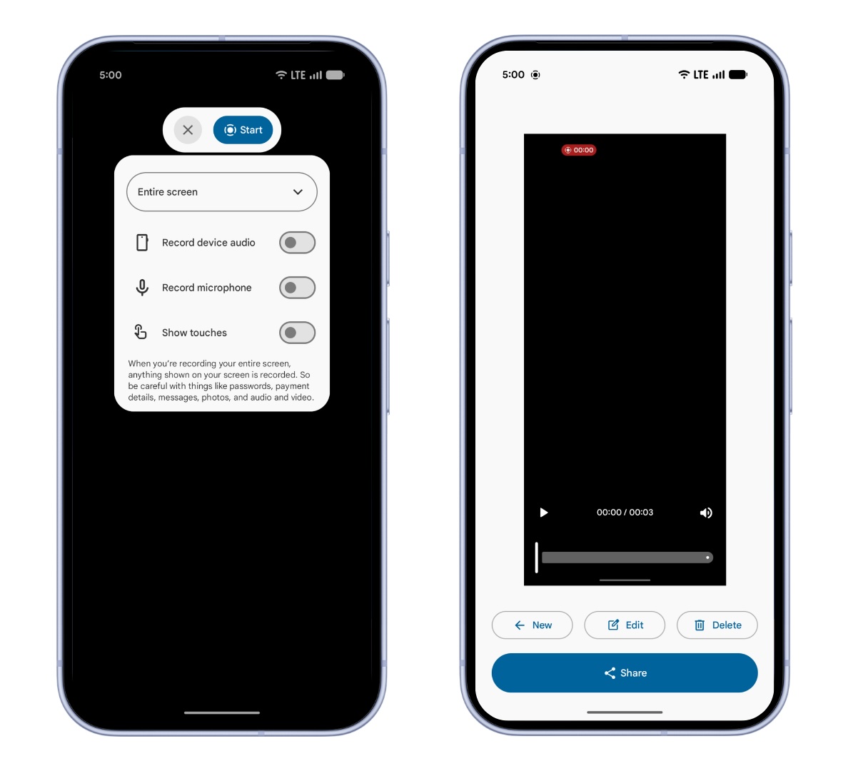 この機能によって既存の「パスワードを表示」システム設定がタッチ操作による入力用と物理キーボード(ハードウェア)による入力用の2つの設定に分割されます。物理キーボードで入力された文字はデフォルトで即座に非表示になります。
