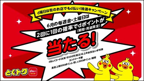| d曜日は街のお店でもd払い!抽選キャンペーン |