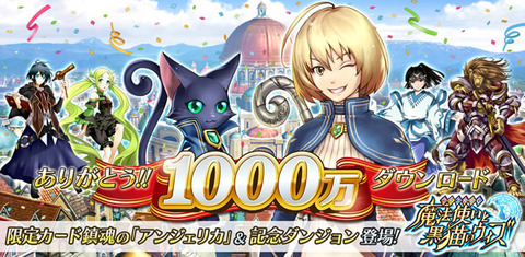 コロプラは22日、スマートフォン向けゲームアプリ「クイズRPG 魔法使いと黒猫のウィズ(猫のウィズ)」の累計ダウンロード数が20日に1000万を突破したと発表しています。
