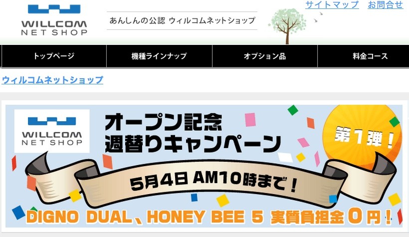 | 5月1日からはウィルコムネットショップに! |