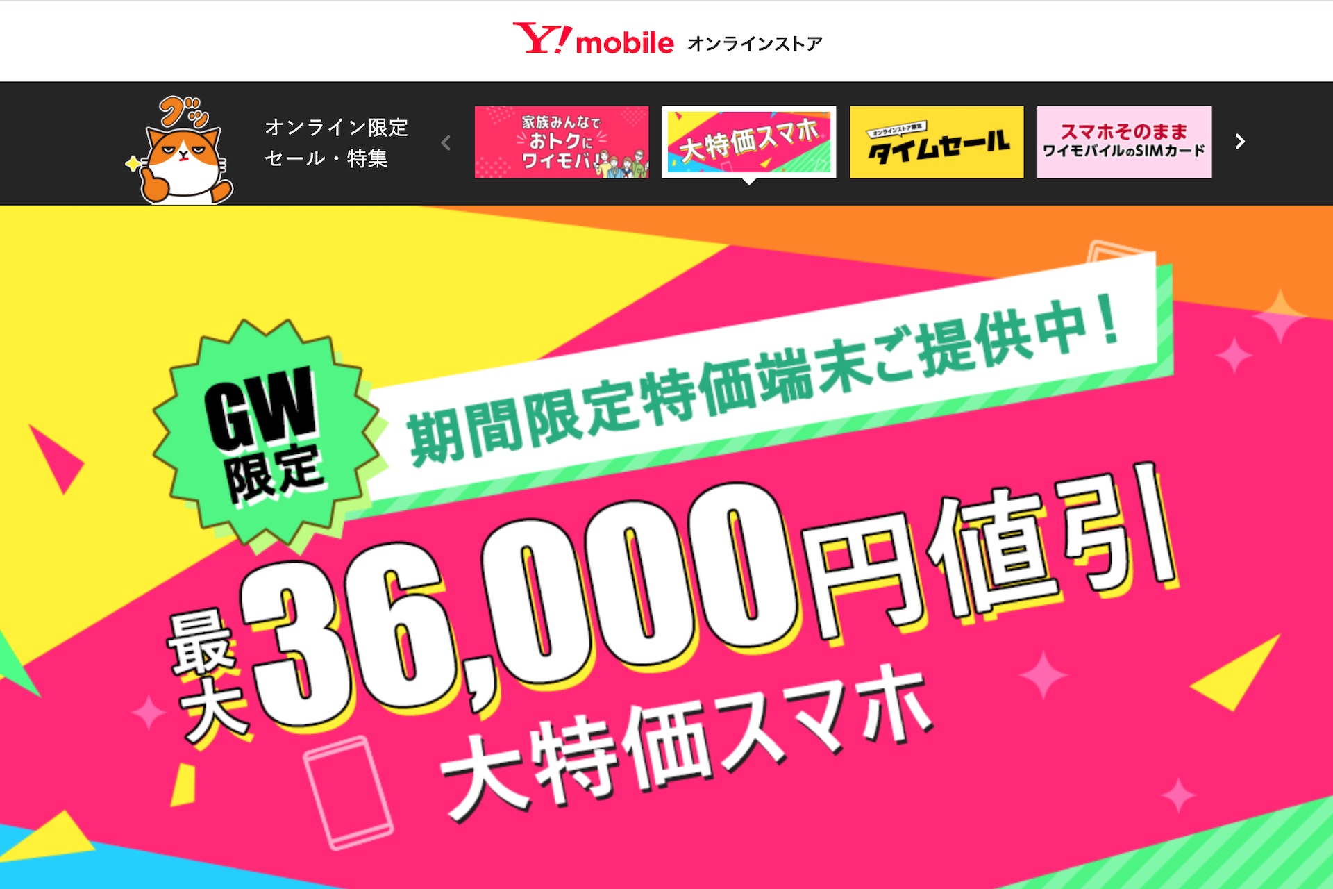 | ワイモバイルオンラインストアで「GW期間限定セール」が開催中! |