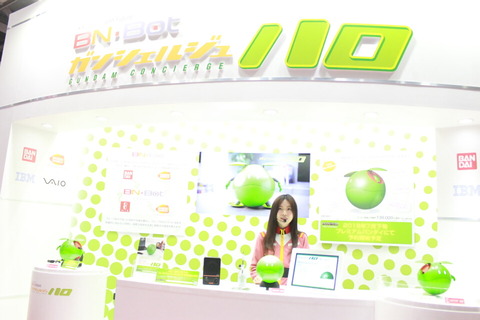 同展示会のバンダイブースでは発表されたばかりの初代ガンダムこと「機動戦士ガンダム」などに登場する「ハロ(Haro)」をモチーフにしたマニアックなトークができるコミュニケーションロボット「ガンシェルジュ ハロ」の展示やデモを行っている。