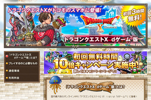 登録方法などの詳細は特設サイト「ドラゴンクエストⅩ(ドラクエ10) | dゲーム - NTTドコモ - 無料」で確認できます。
