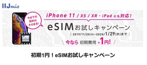 | IIJmioが初期1円!eSIMお試しキャンペーン」を実施! |