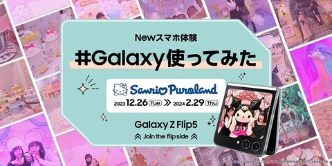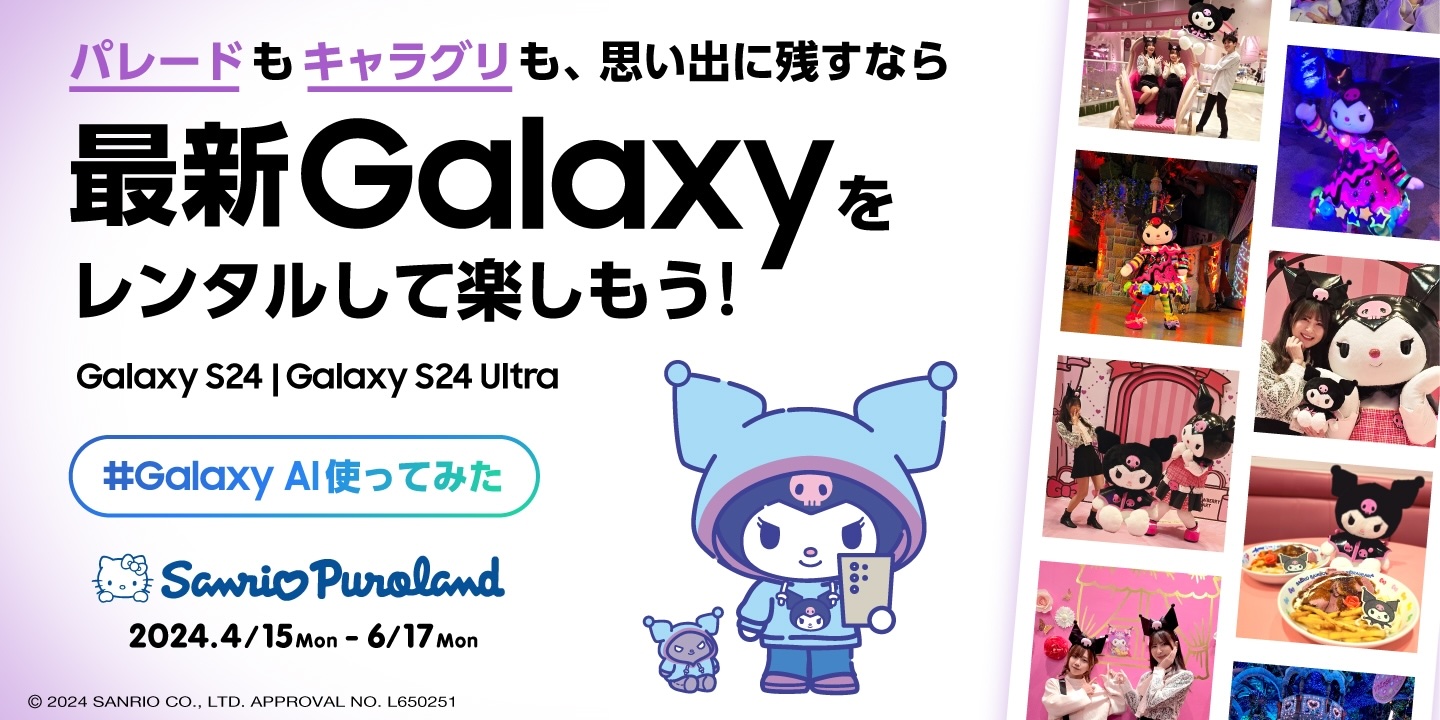 同社ではGalaxyスマホの無料レンタルサービスをサンリオピューロランドにて昨年12月26日に開始して大好評で大人気となっているとし、これまでは折りたたみスマホ「Galaxy Z Flip5」を利用することで「画質がキレイすぎる」や「使いやすい機能がいっぱい」などの多くの人に高い満足度で利用されており、今回は第2弾として4月11日(木)に日本国内で発売したばかりのGalaxy S24とGalaxy S24 Ultraの無料レンタルサービスを開始することになったとのこと。