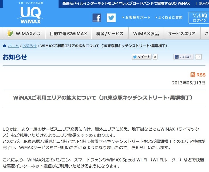 | 大阪や名古屋の地下街でWiMAXサービスエリアが拡大 |
