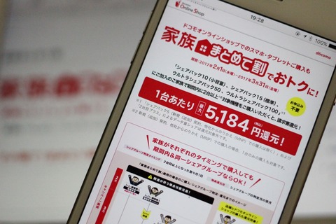 また同社では同一シェアグループで複数台を同時購入した場合に5,184円(税込)を割り引く「家族まとめて割」や「法人まとめて割」についても1月31日(水)までとなっていましたが、期間を延長して2018年2月1日(木)から3月31日(土)まで再実施するとしています。