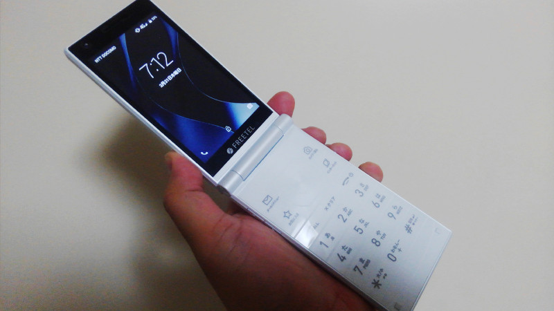 SIMフリーの携帯電話ブランド「FREETEL」を展開しているプラスワン・マーケティングから販売中の折りたたみ型2画面スマートフォン(スマホ)「MUSASHI」。
