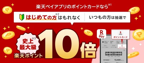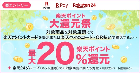 | 楽天モバイル契約者様限定で対象店舗にて楽天ポイント20倍キャンペーンが開始! |