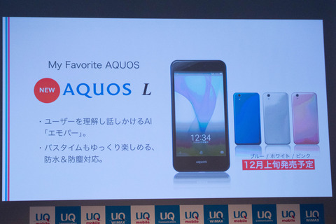 | UQが5インチミドルレンジスマホ「AQUOS L」を12月8日に発売! |