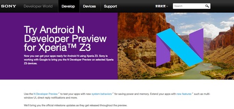 Sony Mobile Communications(以下、ソニーモバイル)は20日(現地時間)、スマートフォン(スマホ)やタブレットなど向けプラットフォーム「Android」の次期バージョン「Android N」における開発者向けプレビュー版「Android N Developer Preview」( http://developer.android.com/preview/ )を同社の一部「Xperia Z3」向けに提供開始したとお知らせしています。