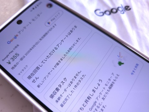 Googleがアンケートに答えるなどすると、特典としてアプリやゲーム、電子書籍などのコンテンツ配信マーケット「Google Play ストア」で使える電子マネー「Google Play クレジット」がもらえるAndroid向けアプリ「Google アンケート モニター」において新たに領収書やレシートを登録すると特典がもらえる「領収書タスク」を提供開始しています。