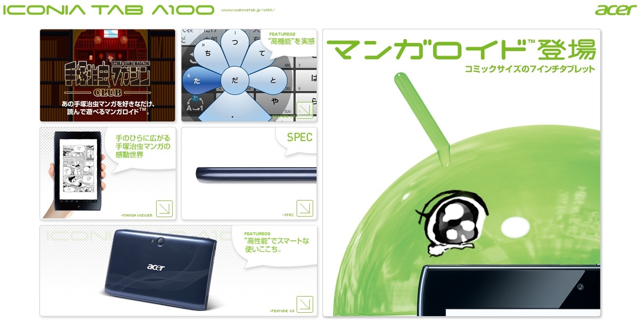 発売に合わせた特設サイト「ICONIA TAB A100」もオープンされています。