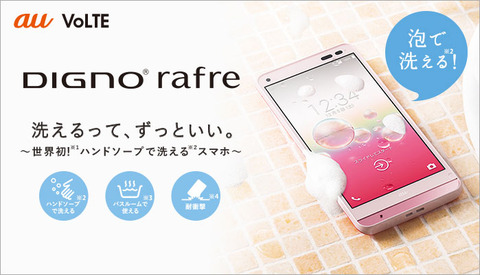 auから昨年12月に発売になった"ママスマホ"こと「DIGNO rafre(型番:KYV36)」を実際にハンドソープや食器用洗剤で洗ってみたので紹介します。